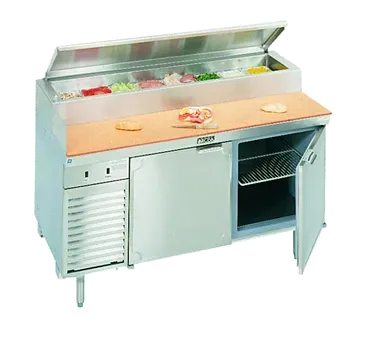 Optimize workflow with cutting-edge tools using La Rosa Refrigeration's L-14180-32 Refrigerated Counter, Pizza Prep Table. This three-section prep table is designed specifically for commercial restaurant use, offering convenience and efficiency. The 16 gauge stainless steel top provides durability and a sleek appearance, while the refrigerated raised rail accommodates nine 1/3 pans, allowing for easy access to ingredients during food preparation. The stainless steel and plastic interior ensures easy cleaning and maintenance, while the removable shelf provides additional storage space. With side-mounted refrigeration and a cold-wall rail construction with rail drain, this prep table ensures consistent cooling and prevents condensation buildup. The expansion valve system and full finished welds guarantee optimal performance and longevity. Complete with 8" stainless steel legs with adjustable feet, this prep table can be easily customized to fit any kitchen layout. Upgrade your restaurant's efficiency and productivity with La Rosa Refrigeration's L-14180-32 Refrigerated Counter, Pizza Prep Table.
