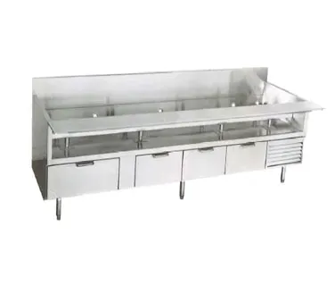 Ignite inspiration with a remarkable addition to your commercial restaurant setup with the La Rosa Refrigeration L-74178-26 Equipment Stand. This refrigerated base is designed to enhance efficiency and organization in your kitchen. With its three-section design and three drawers, you'll have ample space to store ingredients, keeping them fresh and easily accessible. The stainless steel equipment shelf with a marine front edge provides a sturdy surface for food preparation, while the removable equipment support rails offer flexibility in arranging your kitchen tools. The 9-1/2" Richlite cutting board adds convenience and versatility to your workspace. The expansion valve system ensures optimal cooling performance, while the full finished welds guarantee durability. The adjustable feet and 8" stainless steel legs allow for easy leveling and stability. Made in Detroit, this equipment stand is a testament to quality craftsmanship. Upgrade your restaurant's functionality with the La Rosa Refrigeration L-74178-26 Equipment Stand.