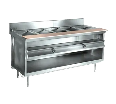 Introducing the La Rosa Refrigeration L-81172-32 Serving Counter, Hot Food, Electric. Infuse your restaurant space with technology for unmatched results. This hot food table is designed to meet the demands of a commercial restaurant setting. With its spacious 72" L x 32" D size, it provides ample room for food preparation and display. The water bath and (2) heaters ensure that your dishes stay at the perfect temperature, while the stainless steel top and integral dish shelf offer durability and convenience. The open cabinet base and undershelf provide additional storage space for your kitchen essentials. Made with 304 type stainless steel and featuring full finished welds, this serving counter is built to last. The 9-1/2" x 1/2" cutting board and faucet add versatility to your food preparation process. Complete with adjustable feet and 8" legs, this unit is easy to customize and move around. Elevate your restaurant's efficiency and productivity with the La Rosa Refrigeration L-81172-32 Serving Counter, Hot Food, Electric.