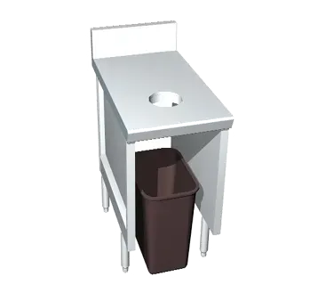 Ignite passion in every aspect with La Rosa Refrigeration's L-90106 Utility Stand. This essential tool is designed to enhance efficiency and cleanliness in commercial restaurant settings. Crafted with a 16 gauge stainless steel top, this utility stand features a 6" diameter trash chute and a rear splash, ensuring easy waste disposal and preventing messes. The open front design allows for seamless integration with waste cans of your choice, while the 22 gauge stainless steel interior ends and stainless steel cabinet face guarantee durability and longevity. The painted exterior ends add a touch of style to this practical unit. With 8" legs and adjustable feet, the L-90106 Utility Stand can be customized to fit any space. Its full finished welds and 304 type stainless steel construction ensure a high-quality product that is MADE IN DETROIT. Upgrade your restaurant's functionality with La Rosa Refrigeration's L-90106 Utility Stand.