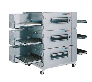 Optimize Your Culinary Workflow with the Lincoln Foodservice, 1600-FB3E, Electric Conveyor Oven. This triple deck, triple conveyor belt oven is designed to revolutionize your restaurant's pizza-making process. With its dual heating system and FastBake Technology, you can achieve perfectly cooked pizzas in no time. The digital control panel and fluorescent readout display make it easy to monitor and adjust the oven's settings, ensuring consistent results every time. The FastBake finger setup allows for quick and efficient loading and unloading of pizzas, while the glass window provides a clear view of the cooking process. Made with stainless steel construction, this oven is built to withstand the demands of a commercial kitchen. The take-off shelf and stand provide convenient storage and workspace. UL and NSF certified, this Lincoln Foodservice oven guarantees safety and quality. Upgrade your restaurant's pizza production with the Lincoln Foodservice, 1600-FB3E, Electric Conveyor Oven.