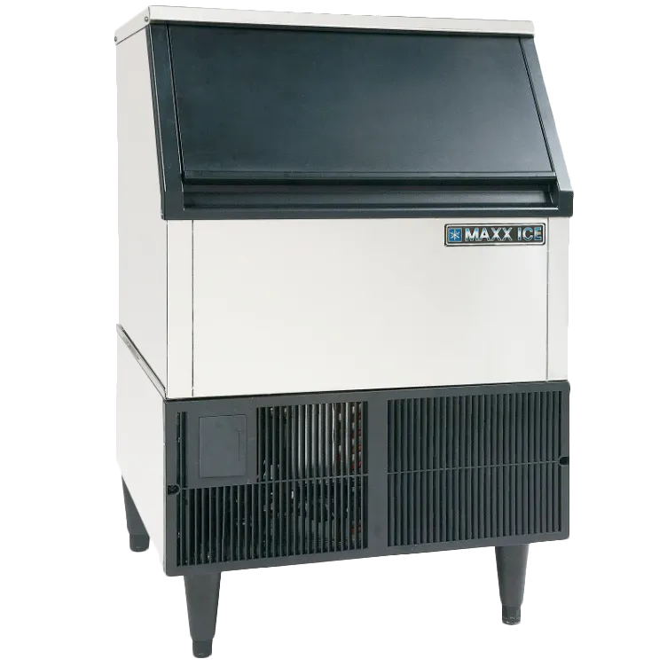 Revamp service with clever options using the Maxx Ice MIM250 Ice Maker with Bin. This cube-style ice maker is designed to meet the demands of a commercial restaurant setting. With a production capacity of approximately 260 lbs of ice per day and a built-in storage capacity of 75 lbs, you'll never run out of ice during peak hours. The self-contained condenser ensures efficient cooling, while the stainless steel construction guarantees durability and easy cleaning. The adjustable legs allow for convenient installation and leveling. The Maxx Ice MIM250 produces slab cube ice, perfect for chilling beverages and creating eye-catching presentations. This ice maker is cETLus, ETL-Sanitation, and CE certified, ensuring its compliance with industry standards. Upgrade your restaurant's ice production capabilities with the Maxx Ice MIM250 Ice Maker with Bin and provide your customers with a refreshing experience.
