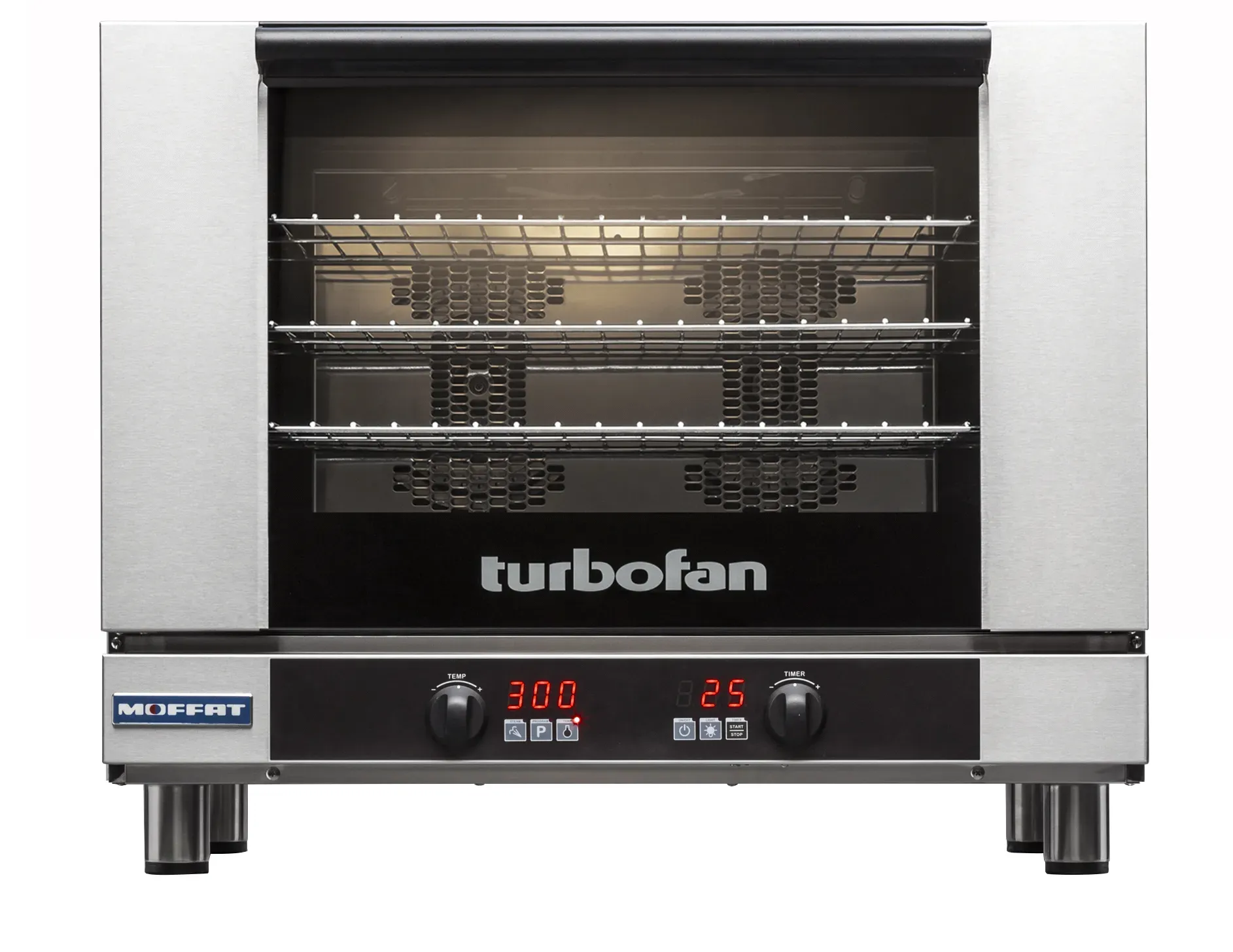 Streamline equipment setup with the Moffat USE28D4 20 Series Digital. This full-size 4 tray turbo fan oven is designed to meet the demands of commercial restaurants. With its digital controls, you can easily set the temperature and time for precise cooking results. The Moffat USE28D4 is packed with features that make it perfect for busy kitchens. Its turbo fan ensures even heat distribution, reducing cooking time and improving efficiency. The 4 tray capacity allows you to cook multiple dishes at once, increasing productivity. This oven is built to last, with a durable construction that can withstand the rigors of a commercial kitchen. Whether you're baking, roasting, or reheating, the Moffat USE28D4 delivers consistent and delicious results every time. Upgrade your restaurant's cooking capabilities with this reliable and efficient oven.