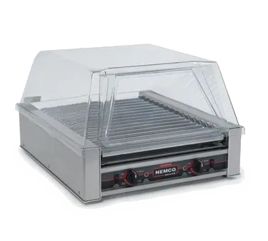 Revolutionize your restaurant setup with the Nemco, 8045SXN, Hot Dog Grill. This Roll-A-Grill Hot Dog Grill is designed to meet the demands of a busy commercial restaurant. With 16 GripsIt coated rollers, it has a capacity to cook up to 45 hot dogs per batch, allowing you to serve up to 900 hot dogs per hour. The aluminum and stainless steel construction ensures durability and easy cleaning, while the two 7-setting heat control switches provide precise temperature control for perfect cooking every time. Equipped with two motors and 1520 watts of power, this grill delivers consistent and efficient performance. NSF and cETLus certified, it meets the highest standards of safety and sanitation. Upgrade your restaurant's hot dog game with the Nemco, 8045SXN, Hot Dog Grill and impress your customers with delicious, perfectly cooked hot dogs.
