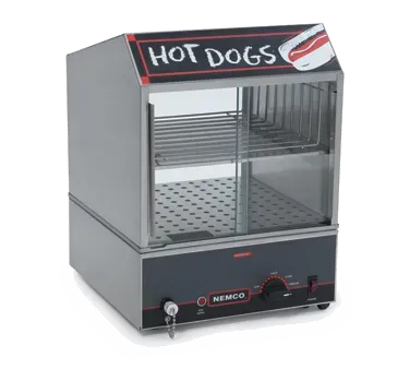 Introducing the Nemco 8300 Hot Dog Steamer, crafted for commercial restaurant brilliance. This countertop steamer is designed to elevate your hot dog game with its over-and-under hot dog steamer and bun warmer. With a capacity of approximately 150 hot dogs and 30 buns, this steamer ensures you can keep up with high demand. The low water indicator warning light lets you know when it's time to refill, preventing any interruptions in service. The tempered glass back panel and front sliding doors not only provide a sleek look but also allow for easy access and visibility. Made with a stainless steel cabinet and base, this steamer is built to withstand the rigors of a busy commercial kitchen. With 800 watts of power and NSF certification, the Nemco 8300 Hot Dog Steamer is a reliable and efficient addition to any commercial restaurant.