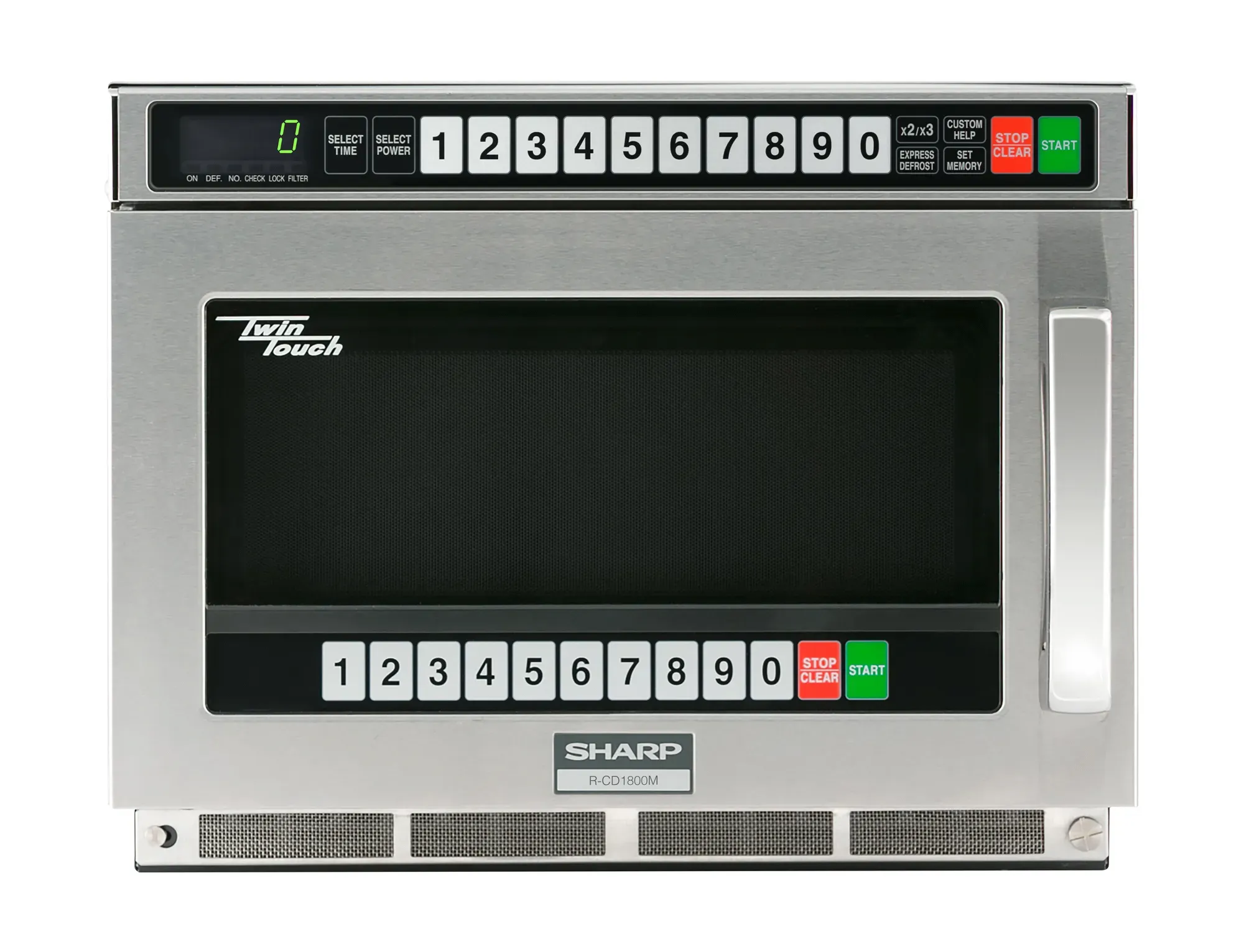 Introducing the Sharp R-CD1800M Microwave Oven, a powerful and reliable addition to any commercial restaurant kitchen. Designed to drive restaurant profitability, this TwinTouch Commercial Microwave Oven boasts an impressive 1800 watts of cooking power and a spacious 0.75 cu. ft. capacity. Its stainless steel door, cavity, and outer wrapper ensure durability and easy cleaning, while the dual magnetron system ensures even and efficient cooking. With a programmable timer and 10 computerized touch pads, this microwave oven offers precise control over cooking times and power levels. The Express Defrost feature allows for quick and efficient thawing of frozen ingredients. The dual control panel and SelectPower feature enable versatile cooking options, including 4-stage cooking and the ability to cook double or triple quantities. NSF and cULus certified, this microwave oven is a reliable and safe choice for any commercial restaurant. Upgrade your kitchen with the Sharp R-CD1800M Microwave Oven and experience enhanced efficiency and productivity.