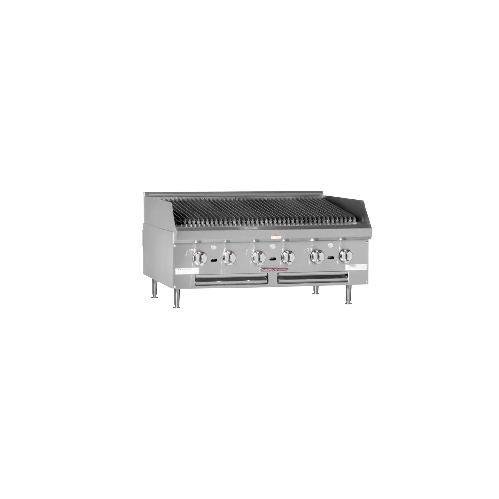 Fuel your restaurant's success with the Southbend HDCL-12 Heavy Duty Counterline Charbroiler Manual. This gas-powered charbroiler is designed to meet the demands of a busy commercial kitchen. With its 12-inch cooking surface and lava rocks, it delivers consistent and delicious results every time. The 40,000 BTU burner provides ample heat for searing and grilling, while the lava rocks help to distribute heat evenly and add that signature smoky flavor to your dishes. Whether you're grilling steaks, burgers, or vegetables, this charbroiler is up to the task. Its heavy-duty construction ensures durability and longevity, even in the busiest of kitchens. The Southbend HDCL-12 is packed with features that make it a valuable addition to any commercial restaurant, from its easy-to-use manual controls to its compact size that fits perfectly on any countertop. Upgrade your kitchen with this reliable and efficient charbroiler and elevate your culinary creations to new heights.
