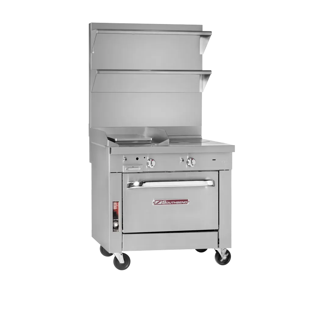 Cook with confidence with the Southbend P36N-BBC Range, a heavy-duty gas range designed for commercial restaurant use. This platinum range features a 36" modular design, making it versatile and adaptable to any kitchen layout. With four 35,000 BTU open burners and a 12" charbroiler, this range offers exceptional cooking power and flexibility. The manual controls allow for precise temperature adjustments, ensuring consistent and delicious results every time. The stainless steel radiants distribute heat evenly, while the front, sides, rear, and exterior bottom are also made of stainless steel for durability and easy cleaning. With a total BTU of 172,000, this range can handle high-volume cooking with ease. Certified by CSA and NSF, this Southbend range is a reliable and safe choice for any commercial kitchen. Upgrade your restaurant's cooking capabilities with the Southbend P36N-BBC Range and experience professional-grade performance.