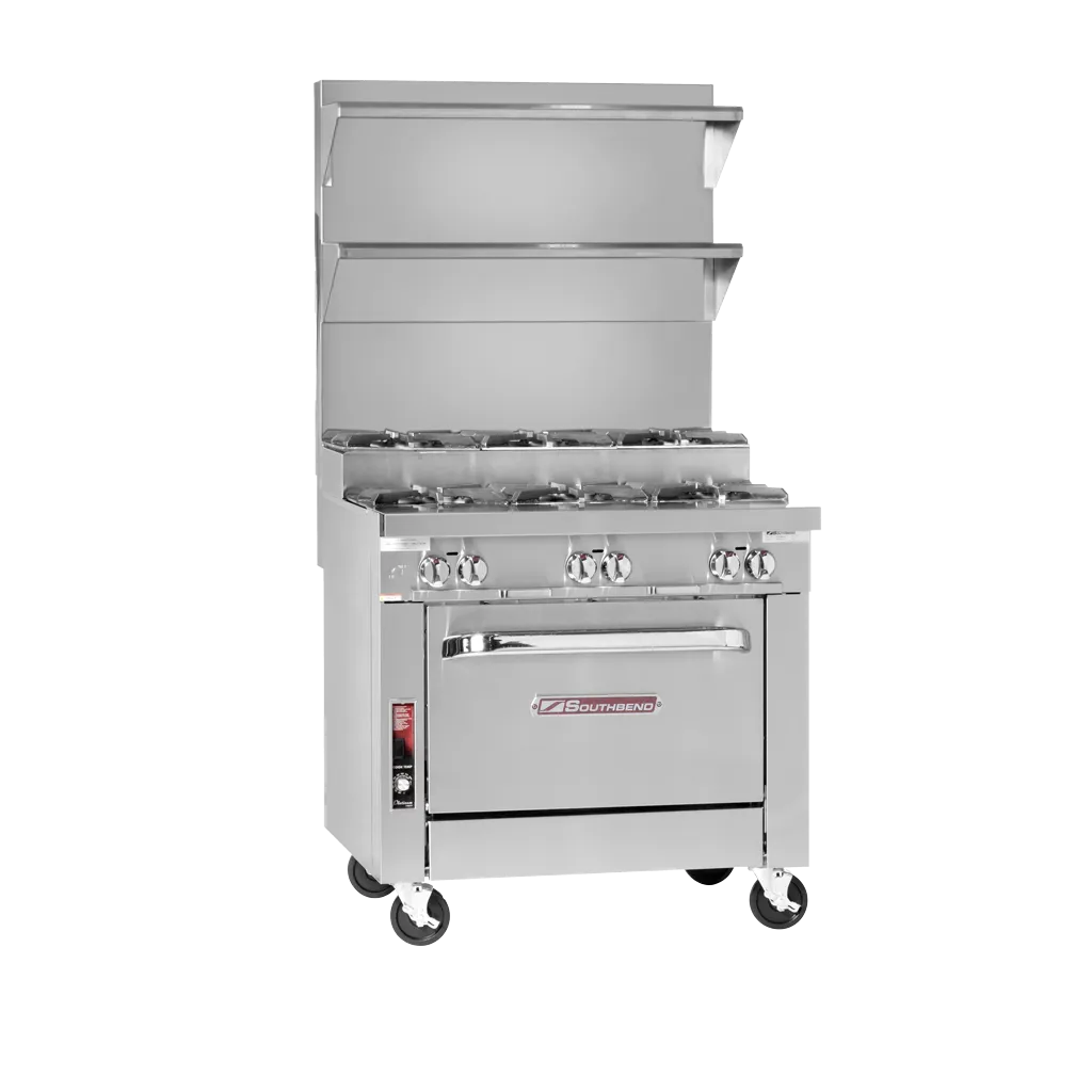 Maximize your food service potential with the Southbend P48C-BBBB-SU Range, a heavy-duty gas range designed to meet the demands of a commercial restaurant. This platinum range features four 35,000 BTU open burners and four 40,000 BTU step-up open burners, providing precise heat control for all your cooking needs. The manual controls allow for easy operation, while the stainless steel construction ensures durability and easy cleaning. With two cabinets, you'll have ample storage space for your cookware and ingredients. The 6" adjustable legs provide stability and flexibility in positioning the range. With a total of 280,000 BTU, this range delivers powerful performance to handle high-volume cooking. Certified by CSA and NSF, you can trust in its quality and safety. Don't miss out on this reliable and efficient range that will elevate your restaurant's cooking capabilities.