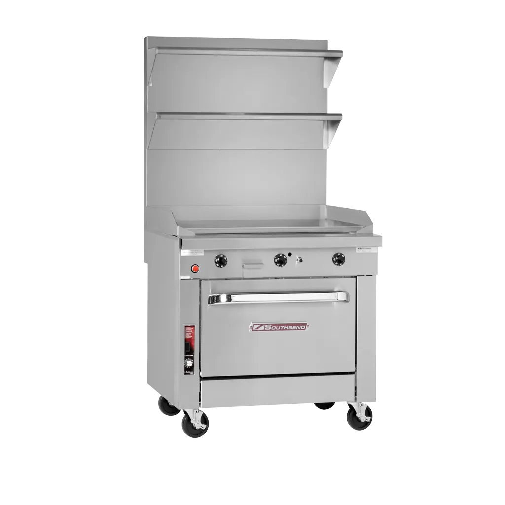 Equip your commercial kitchen with the Southbend P48N-GGGG Range, a heavy-duty gas range designed to meet the demands of a bustling restaurant. This platinum range features a 48" modular design, making it versatile and adaptable to your kitchen layout. The griddle comes with a 1" thick plate, ensuring even heat distribution for perfect cooking results every time. With manual controls and battery spark ignition, you have full control over the cooking process. The stainless steel front and sides not only provide durability but also give your kitchen a sleek and professional look. With a powerful 128,000 BTU, this range delivers the heat you need to cook large quantities of food quickly and efficiently. Certified by cCSAus, CSA Flame, CSA Star, and NSF, this range meets the highest safety and sanitation standards. Upgrade your kitchen with the Southbend P48N-GGGG Range and experience the reliability and performance that Southbend is known for.
