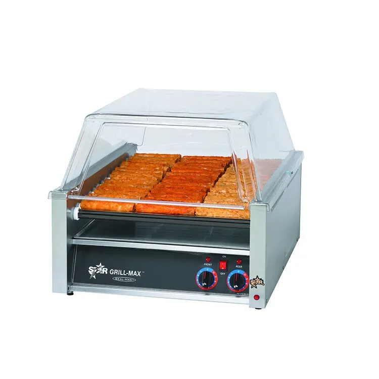 Enhance the heart of your restaurant with the Star 45ST Hot Dog Grill. This roller-type grill is perfect for commercial restaurant use, especially in stadiums or venues with stadium seating. With its StalTek coated non-stick rollers, this grill can cook up to 45 hot dogs at a time, ensuring quick and efficient service. The analog controls for the front and rear zones allow for precise temperature adjustments, ensuring that your hot dogs are cooked to perfection. Made with stainless steel construction, this grill is not only durable but also easy to clean, making it ideal for busy restaurant kitchens. The Star 45ST Hot Dog Grill is cULus and UL EPH Classified, guaranteeing its safety and quality. Made in the USA, this grill is a reliable and authentic addition to any commercial restaurant.