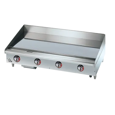Transform your food service with the Star, 548CHSF, Griddle, Electric, Countertop. This heavy-duty griddle is designed to meet the demands of a commercial restaurant kitchen. With a 48" wide by 20-3/4" deep cooking surface, you'll have plenty of space to cook multiple items at once. The 1" thick chrome griddle plate ensures even heat distribution and excellent heat retention, allowing you to achieve perfect results every time. The snap-action thermostat with a temperature range of 150-450F gives you precise control over the cooking process. The 4000 watt element every 12" ensures fast and efficient heating. The welded steel frame with a stainless steel top and front, along with aluminized steel sides, ensures durability and easy cleaning. The splash guard and grease trough help to keep your kitchen clean and safe. With its high-quality construction and reliable performance, the Star, 548CHSF, Griddle, Electric, Countertop is a must-have for any commercial restaurant.
