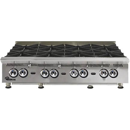 Ultra-Max® natural gas hot plates are designed for years of maintenance free operation and reliable cooking performance. Whatever the menu item, Ultra-Max hot plates will out perform the competition. The 808HA natural gas hotplate features eight burners with 30,000 BTUs per burner, and a standing pilot for each burner.