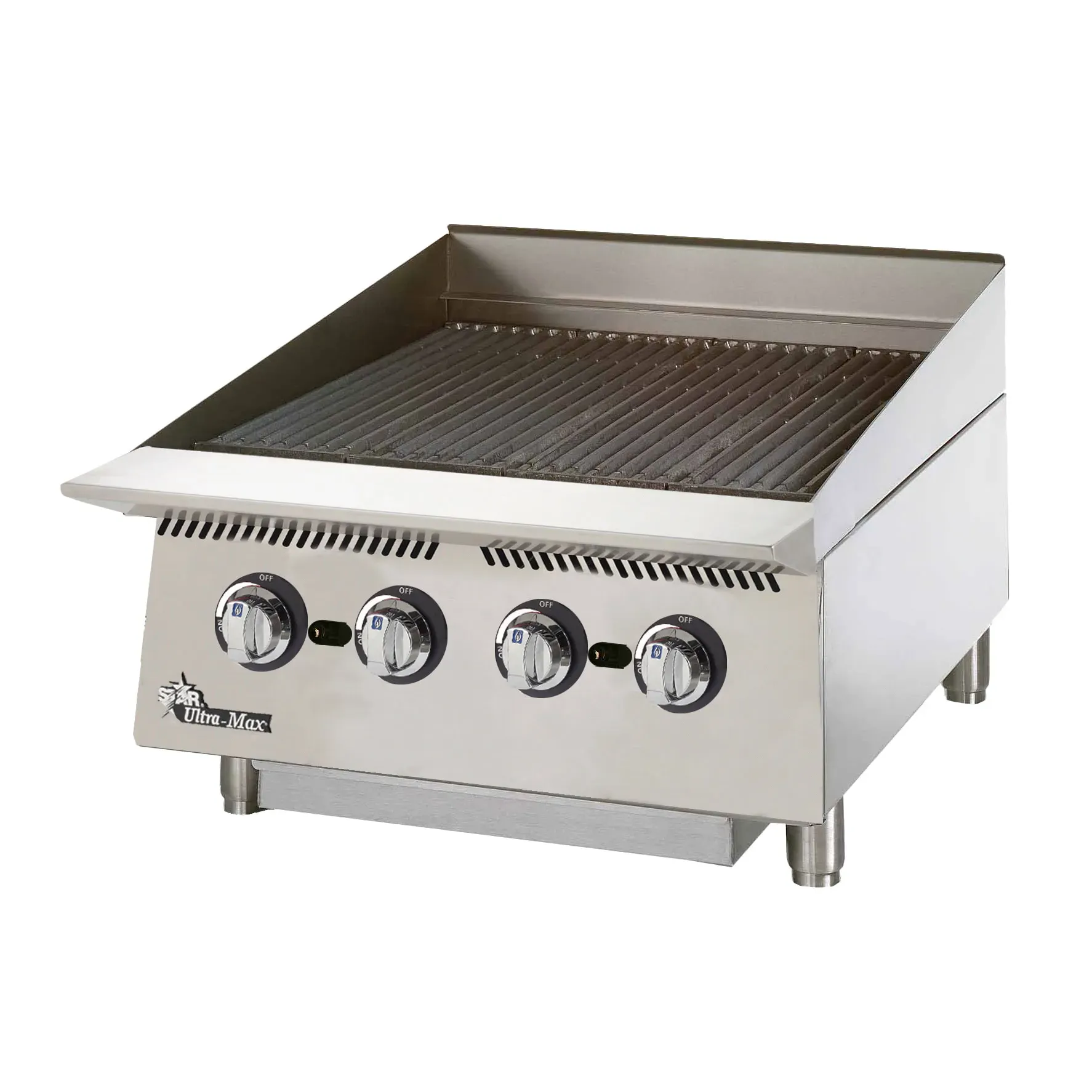 Master the art of cooking with the Star 8124RCBB Gas Countertop Charbroiler. This high-quality charbroiler is designed to meet the demands of a commercial restaurant kitchen. With its steel alloy radiants and adjustable manual controls every 6 inches, you have precise control over the cooking process. The welded steel frame and stainless steel exterior ensure durability and easy cleaning, while the cast iron broiling grates provide excellent heat retention and even cooking. The drip pan, splash guard, and grease trough help to keep your workspace clean and safe. With 80,000 BTUs of power, this charbroiler can handle high-volume cooking with ease. Made in the USA and UL EPH Classified, you can trust in the quality and reliability of this Star charbroiler. Upgrade your restaurant kitchen with the Star 8124RCBB Gas Countertop Charbroiler and elevate your cooking game.