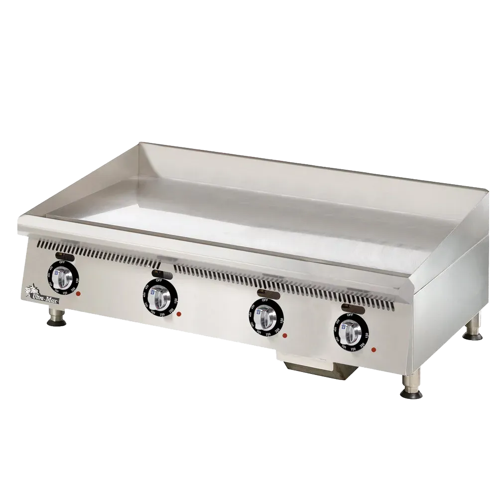 Enhance your commercial kitchen with the Star 872TCHSA Gas Countertop Griddle. This high-quality griddle is designed to meet the demands of a busy restaurant kitchen. With a spacious 72" W x 24" D cooking surface, you'll have plenty of room to cook multiple items at once. The 1" thick T1 steel hexavalent chrome griddle plate ensures even heat distribution and excellent heat retention, while the embedded mechanical snap-action thermostat allows for precise temperature control from 150 to 550 degrees Fahrenheit. The 4-3/8" tapered wrap-around splash guard and 3-1/2" front grease trough help to keep your workspace clean and safe. The heavy-duty metal knobs and welded steel frame with a stainless steel exterior ensure durability and longevity. With 180,000 BTU of power, this griddle can handle any cooking task with ease. Trust in the Star 872TCHSA Gas Countertop Griddle to deliver exceptional performance and reliability in your commercial kitchen.
