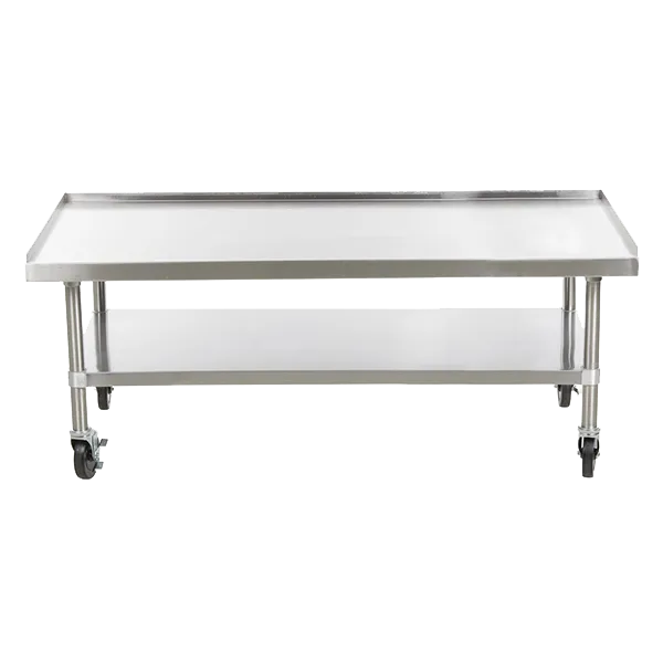 Master your restaurant's kitchen with the Star STAND/HC-60 Equipment Stand for Countertop Cooking. This ultra-max 60" stand is designed to meet the demands of a busy commercial kitchen. Made with stainless steel construction, it is not only durable but also easy to clean, ensuring a hygienic workspace. The stand is rated for 800 lbs, providing a sturdy and reliable surface for your countertop cooking equipment. With casters included, you can easily move the stand around to accommodate your kitchen layout. Whether you need a stand for your griddle, fryer, or other countertop cooking equipment, the Star STAND/HC-60 is the perfect solution. Upgrade your kitchen setup and streamline your cooking process with this high-quality equipment stand.