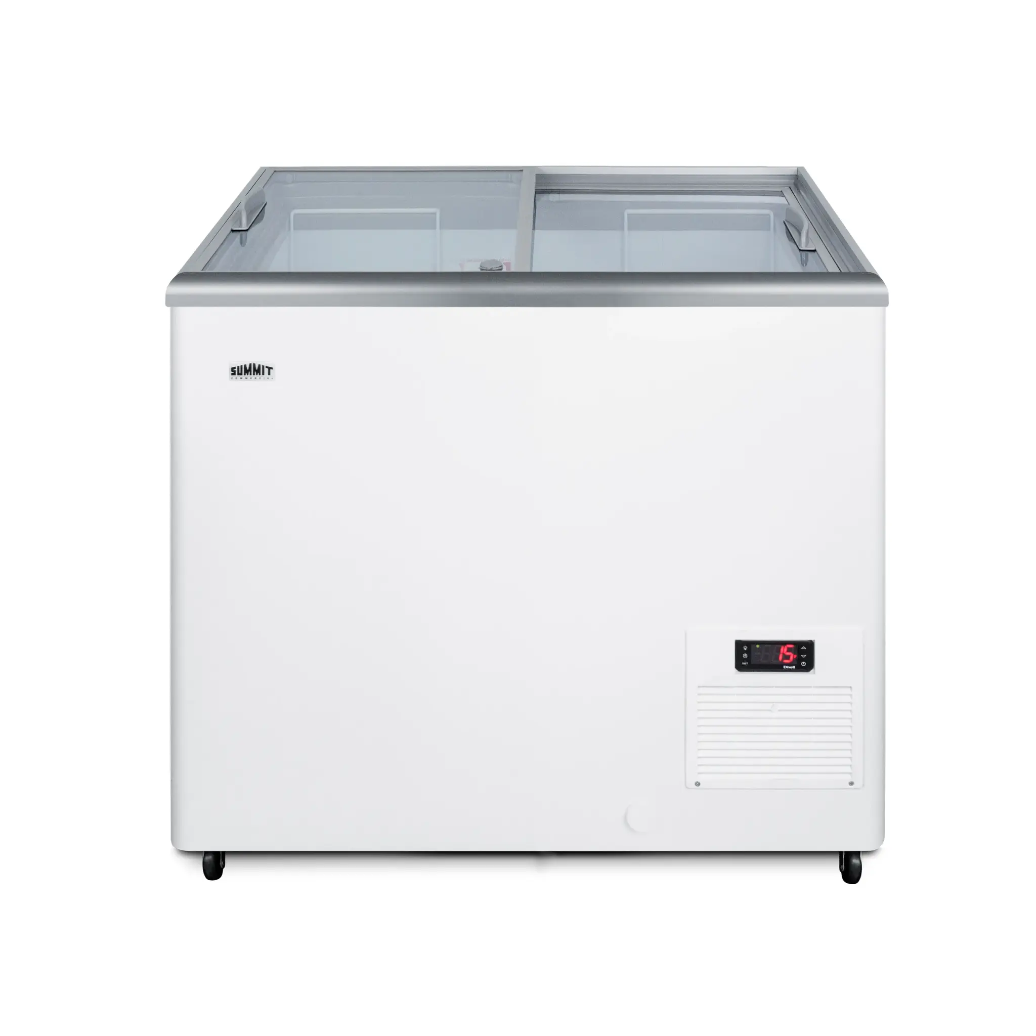 Foster innovation with the Summit Appliance, NOVA22, Chest Freezer. This chest-style ice cream freezer is designed to meet the demands of a commercial restaurant. With a spacious 7.2 cu.ft. capacity and two sliding tempered glass lids, it provides easy access to your frozen treats. The removable lock ensures the security of your inventory, while the digital thermostat allows you to set the perfect temperature between -13F to 23F. The NOVA22 features two epoxy-coated wire novelty baskets for organized storage. Its manual defrost system and self-contained side-mounted refrigeration make maintenance a breeze. The white exterior and white painted steel interior give it a clean and professional look. This freezer operates on R290a Hydrocarbon refrigerant, ensuring energy efficiency. Trust Summit Appliance for a reliable and high-performing chest freezer that will enhance your restaurant's operations.
