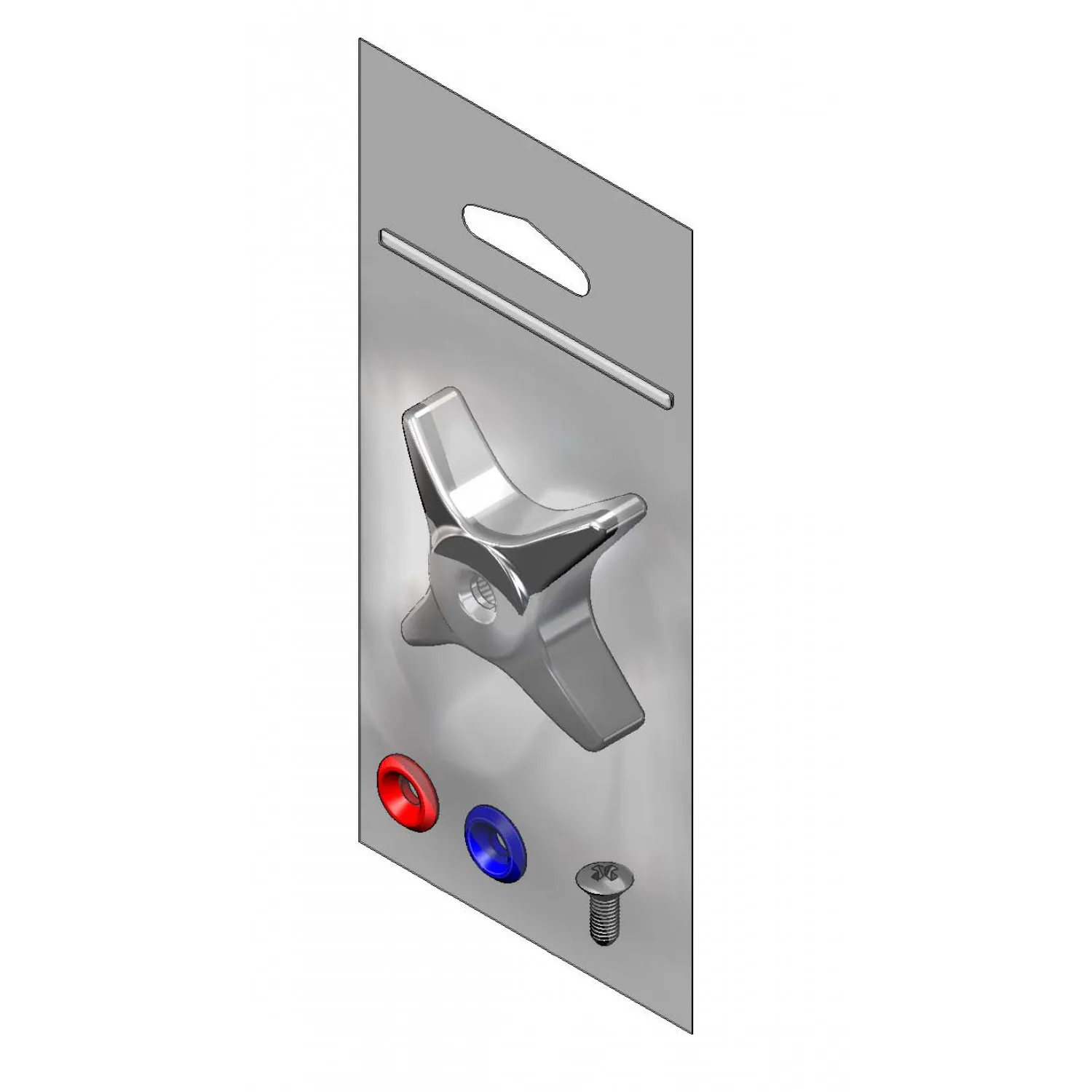 Manage Equipment Accessories with T&S Brass, 002521-45K, Parts Kits. This essential kit from T&S Brass is designed to help you efficiently manage your restaurant equipment accessories. With its polished chrome plated 4-arm handle, this kit not only adds a touch of elegance to your commercial kitchen but also ensures durability and longevity. The red and blue color-coded indexes make it easy to identify hot and cold water connections, streamlining your workflow and preventing any mix-ups. The handle screw included in the kit ensures a secure and tight fit, minimizing the risk of leaks or malfunctions. Whether you're a busy restaurant owner or a professional chef, this T&S Brass Parts Kit is a must-have for your commercial kitchen. Trust T&S Brass, a reputable vendor known for their high-quality products, to provide you with the accessories you need to keep your restaurant running smoothly.
