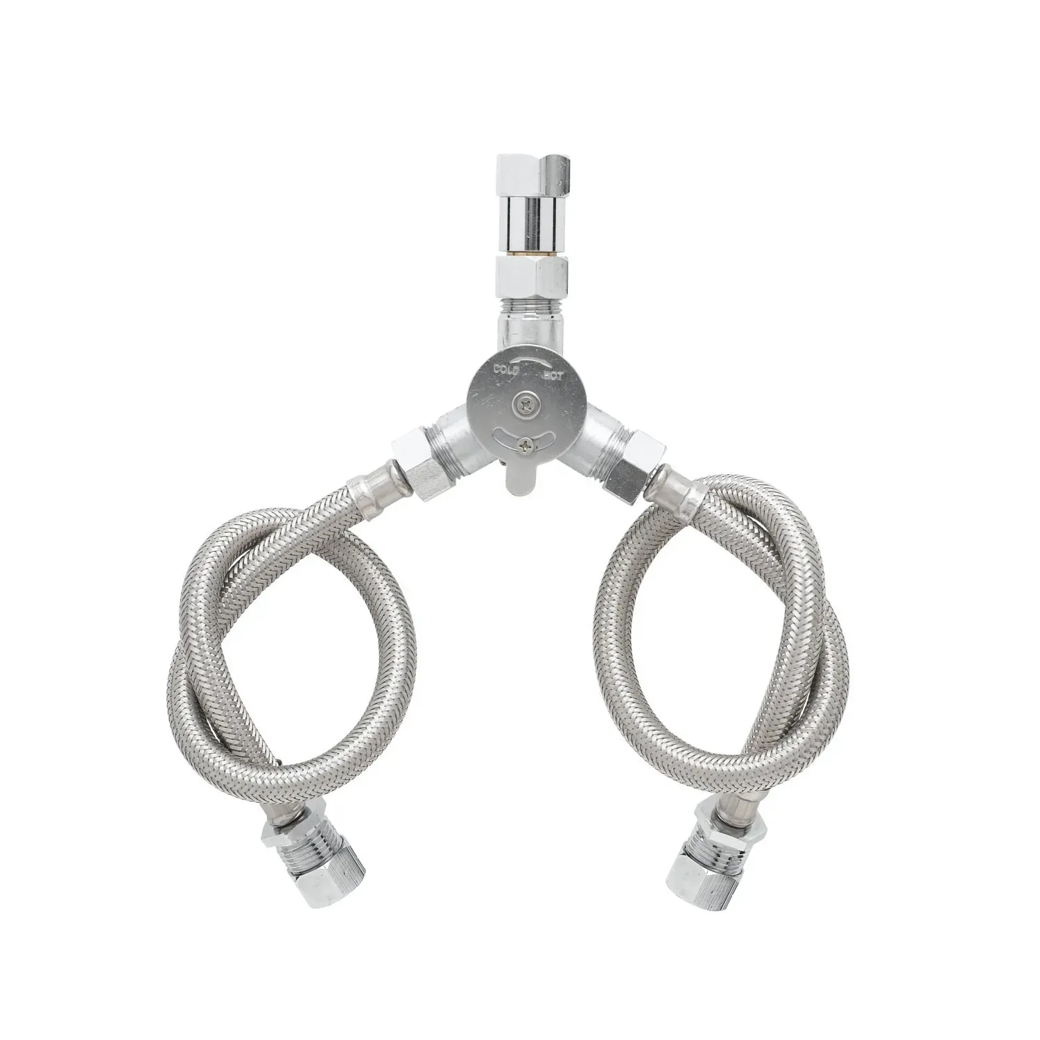Secure Equipment Operation with T&S Brass, 019321-40, Miscellaneous Parts. Ensure the smooth functioning of your commercial restaurant equipment with this temperature control mixing valve. Designed by T&S Brass, a trusted name in the industry, this valve guarantees precise temperature control, allowing you to maintain optimal conditions for your kitchen operations. The 18" flexible stainless steel construction with 1/2" male inlets ensures durability and easy installation, making it a reliable choice for busy restaurant kitchens. With its secure equipment operation, this valve helps prevent accidents and ensures the safety of your staff and customers. Whether you're running a bustling restaurant or a small cafe, this T&S Brass mixing valve is an essential component for maintaining a well-functioning kitchen. Invest in this high-quality product to enhance the efficiency and safety of your commercial restaurant operations.