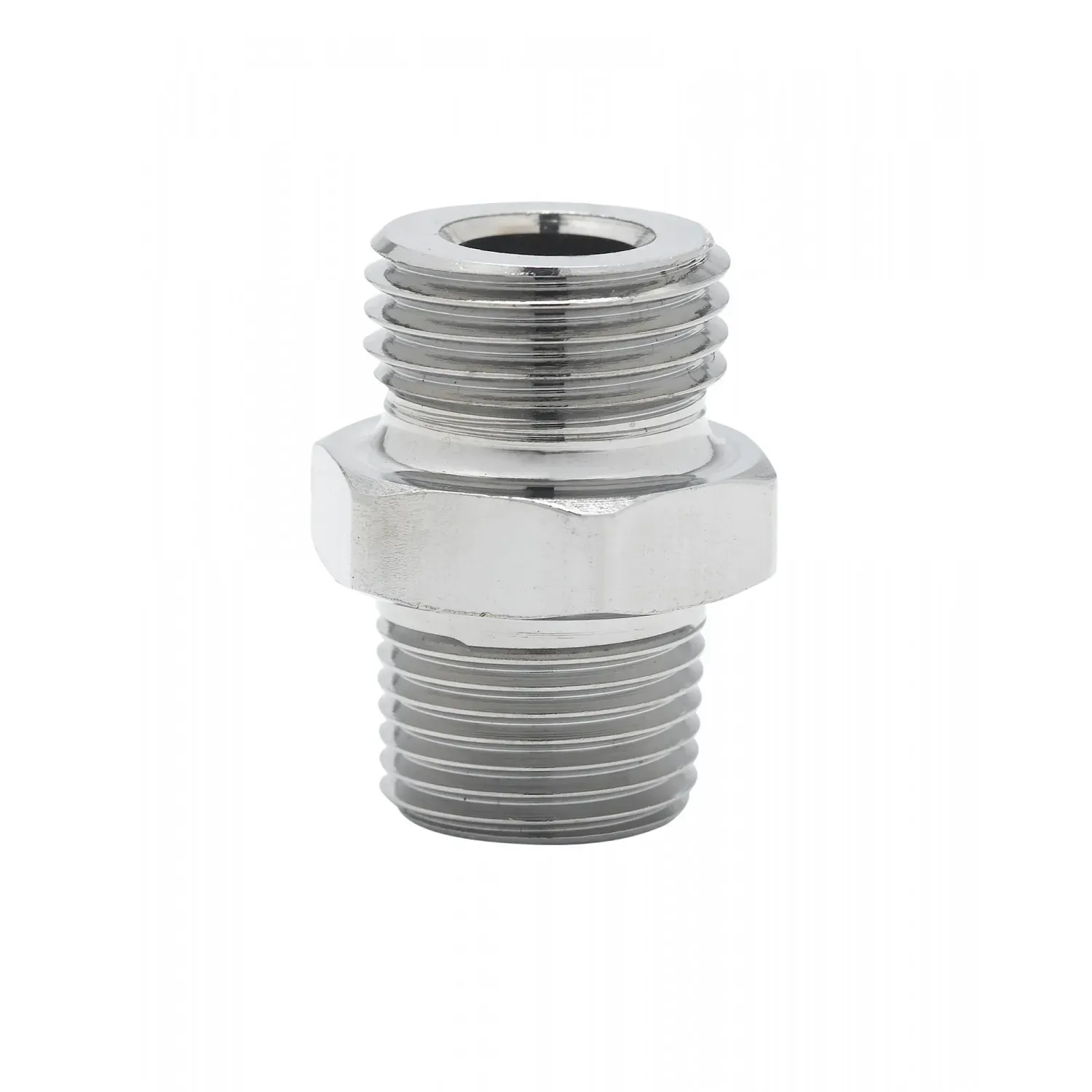 Maintain System Performance with T&S Brass, 053A, Pre-Rinse Faucet, Parts & Accessories. This essential commercial restaurant tool ensures your kitchen runs smoothly and efficiently. The T&S Brass 053A is a male adapter with a washer, designed to connect 3/8" NPT Male pipes to 3/4"-14 UN male pipes. Crafted from chrome-plated brass, this adapter is durable and resistant to corrosion, ensuring long-lasting performance in a busy restaurant environment. Whether you're replacing a worn-out part or upgrading your pre-rinse faucet system, the T&S Brass 053A is the perfect choice. Its high-quality construction and precise design guarantee a secure and leak-free connection, allowing you to maintain optimal system performance. Trust T&S Brass for all your pre-rinse faucet parts and accessories needs.