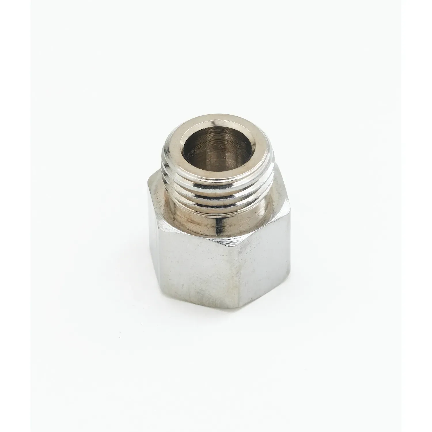Introducing the T&S Brass, 054A, Pre-Rinse Faucet, Parts & Accessories. This chrome plated brass adapter is a must-have for any commercial restaurant. With its 3/8" NPT female x 3/4-14 UN male adapter, it seamlessly connects different parts of your pre-rinse faucet system. The chrome plated brass material ensures durability and longevity, even in a high-volume kitchen environment.