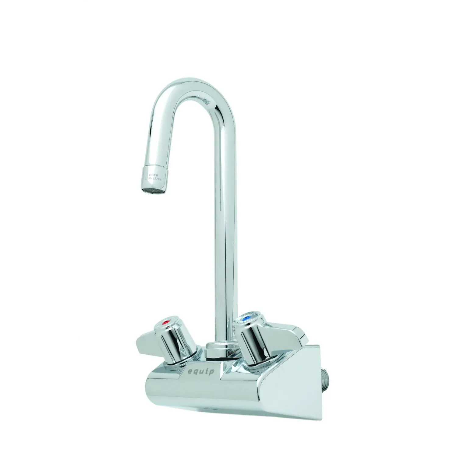 Maintain Operational Safety with the T&S Brass, 5F-4WLX03, Faucet, Wall / Splash Mount. This high-quality faucet is designed specifically for commercial restaurant use, ensuring the safety and efficiency of your operations. With its polished chrome plated brass body, this faucet not only adds a touch of elegance to your establishment but also guarantees durability and longevity. The 3" swivel gooseneck with a 2.2 GPM aerator allows for easy maneuverability and efficient water flow, making it ideal for various tasks in a busy kitchen. The quarter-turn ceramic cartridges provide smooth and precise control over water temperature and flow, preventing any sudden changes that could lead to accidents. Whether you're washing dishes, filling pots, or cleaning produce, this wall mount faucet is a reliable and essential tool for maintaining a safe and productive restaurant environment.