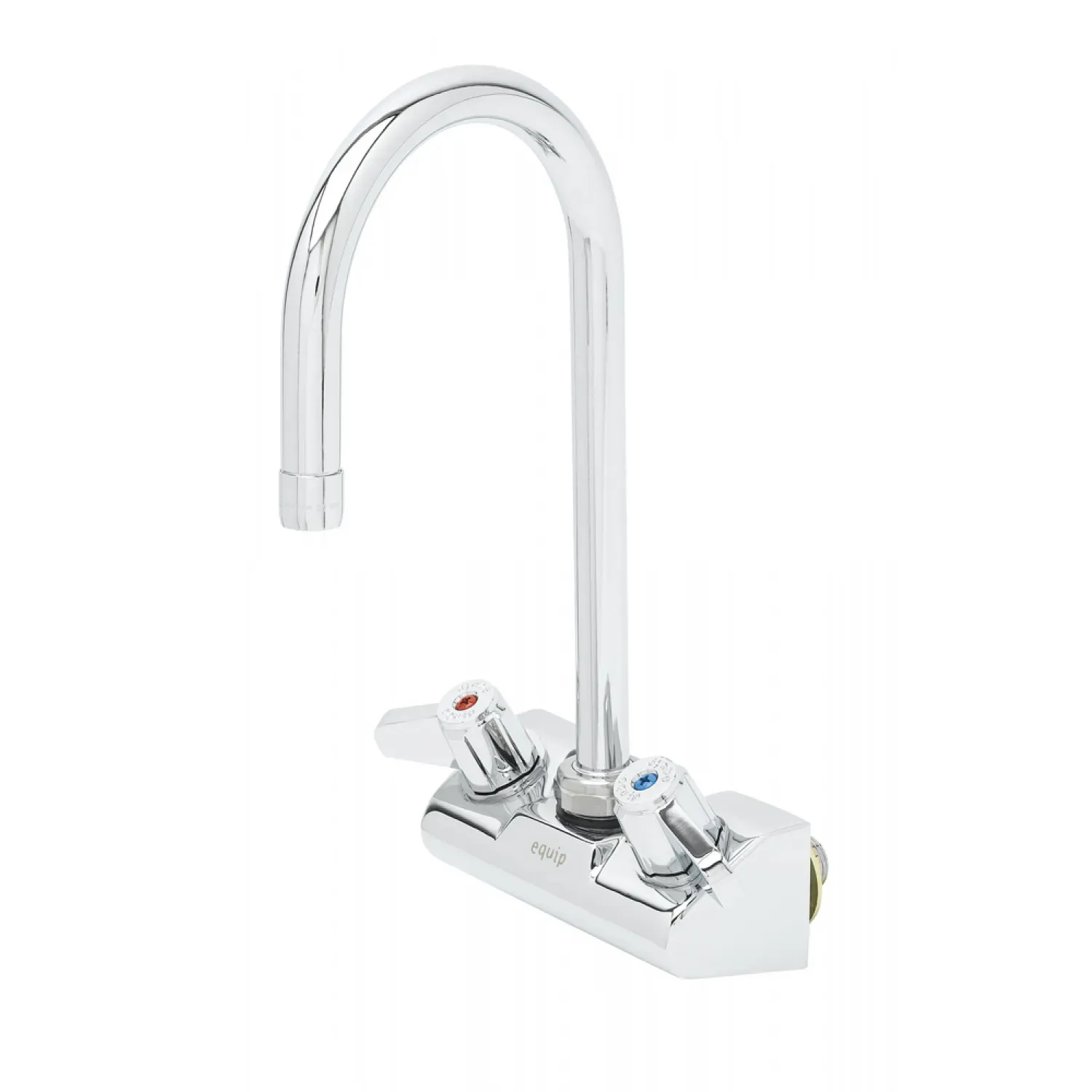 Optimize System Durability with the T&S Brass, 5F-4WLX05, Faucet, Wall / Splash Mount. This high-quality faucet is designed to withstand the demands of a busy commercial restaurant. With its polished chrome plated brass body, it not only adds a touch of elegance to your establishment but also ensures long-lasting durability. The 5 9/16" swivel gooseneck with a 2.2 GPM aerator provides flexibility and efficiency, allowing you to easily fill pots and pans or rinse dishes. The quarter-turn ceramic cartridges offer smooth operation and prevent leaks, saving you time and money on maintenance. Whether you're running a bustling kitchen or a trendy bar, this wall mount mixing faucet is a reliable choice. Trust T&S Brass, a trusted name in the industry, to deliver a faucet that meets your restaurant's needs.