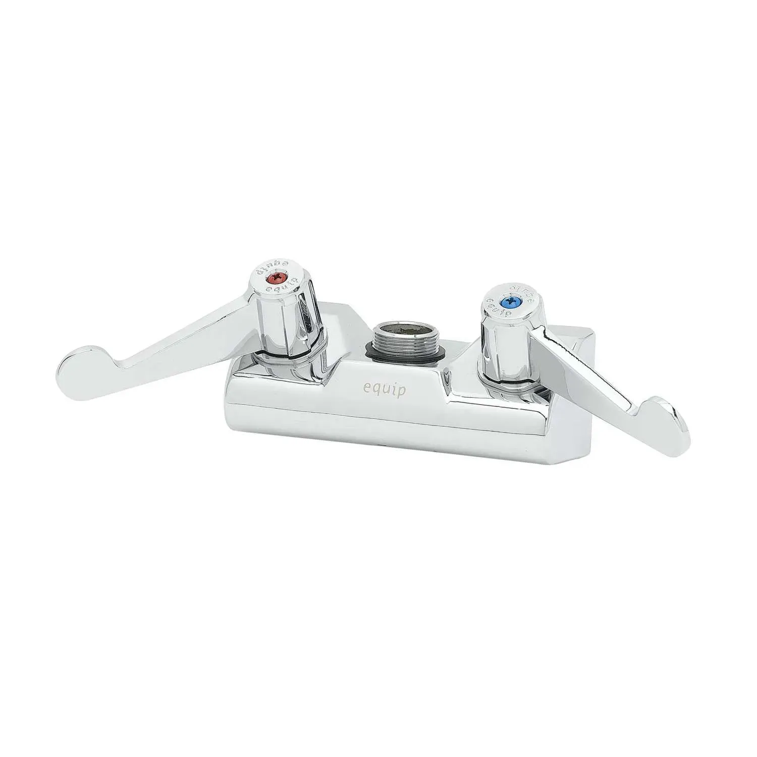 Facilitate Smooth Operation with the T&S Brass, 5F-4WWX00, Faucet, Wall / Splash Mount. This high-quality faucet is designed to meet the demands of a busy commercial restaurant. With its polished chrome plated brass body, it not only adds a touch of elegance to your establishment but also ensures durability and longevity. The swivel outlet accepts equip swing nozzles, providing flexibility and convenience during food preparation and dishwashing. The quarter-turn ceramic cartridges offer smooth and precise control over water flow, allowing for efficient operation. Whether you're filling pots, rinsing dishes, or washing hands, this faucet delivers reliable performance every time. The 4" wall mount design saves valuable counter space, making it ideal for compact kitchens. Trust T&S Brass, a reputable vendor known for their commitment to quality and innovation, to enhance the functionality and efficiency of your restaurant's operations.