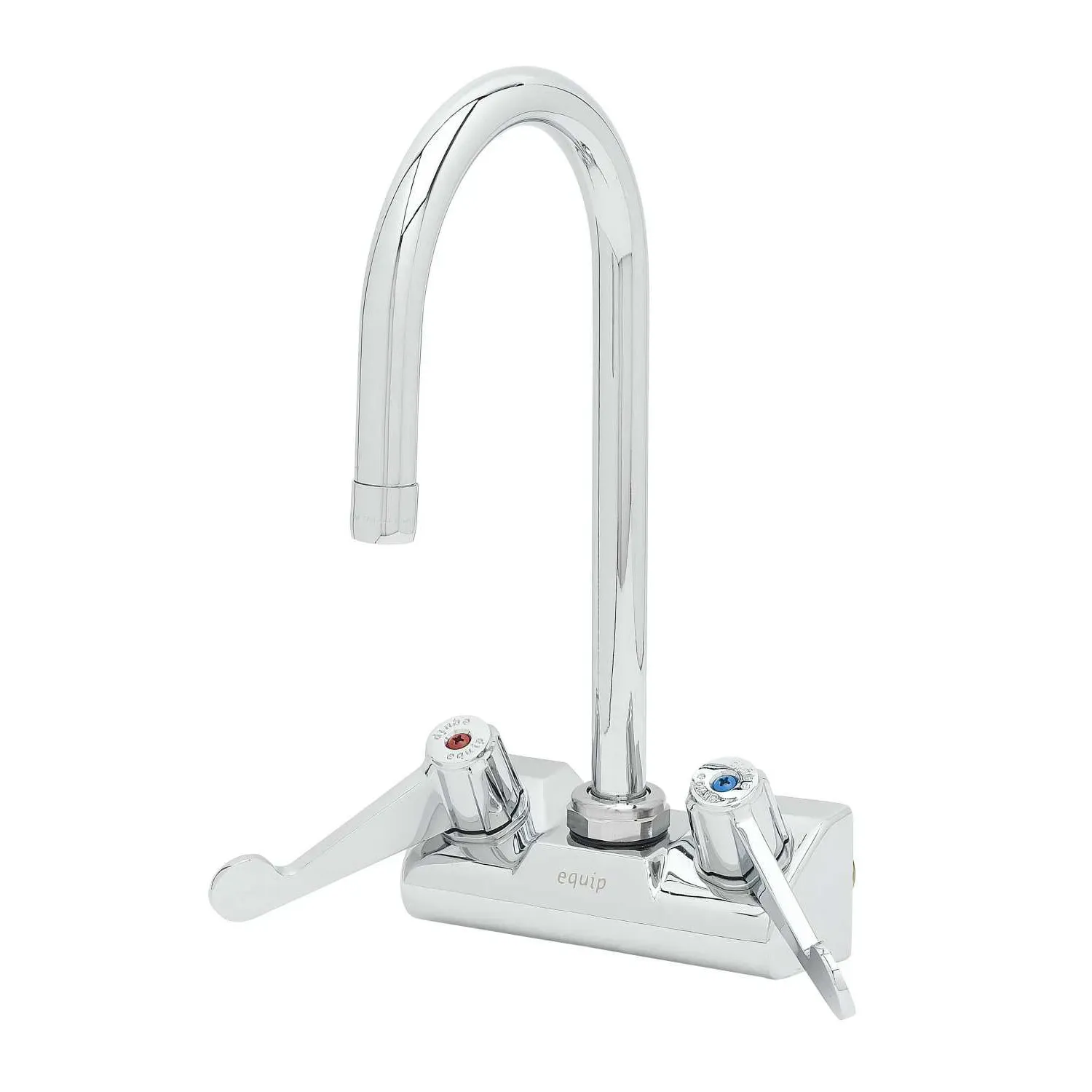 Improve system performance with the T&S Brass, 5F-4WWX05, Faucet, Wall / Splash Mount. This commercial-grade faucet is designed to enhance efficiency and durability in a restaurant setting. With its polished chrome plated brass body, it not only adds a sleek and professional look to your kitchen but also ensures long-lasting performance. The 5 9/16" equip swivel gooseneck with a 2.2 GPM aerator allows for easy maneuverability and efficient water flow, making it ideal for filling large pots and pans. The quarter-turn ceramic cartridges provide smooth and precise control over water temperature and flow, reducing the risk of leaks and drips. Whether you're washing dishes or prepping ingredients, this wall mount mixing faucet is a reliable and essential tool for any commercial kitchen. Trust T&S Brass to deliver exceptional quality and functionality for your restaurant needs.