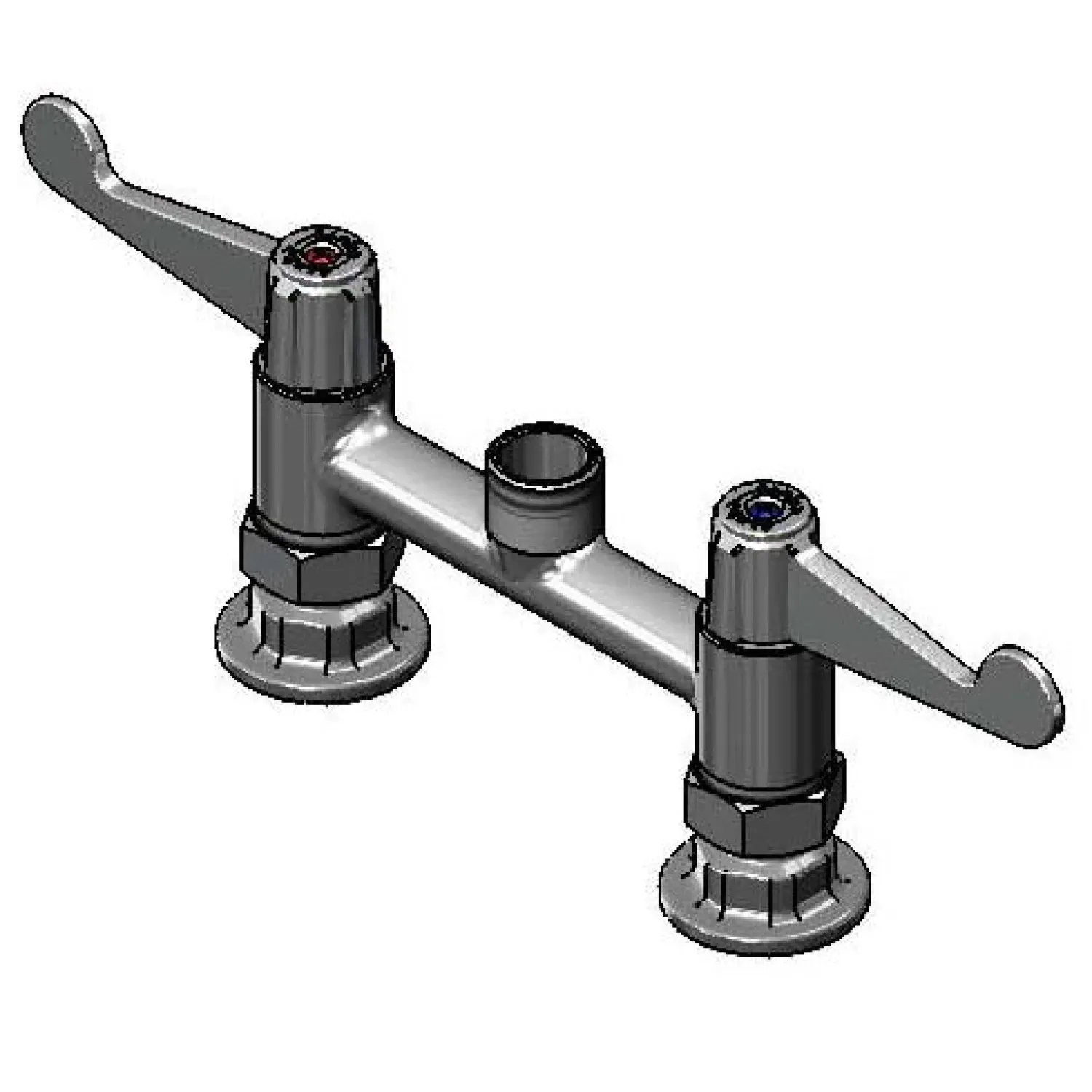 Maintain System Performance with the T&S Brass, 5F-6DWX00, Equip. This deck mount faucet is designed to meet the demands of a commercial restaurant setting. With its swivel outlet and 4" wrist-action handles, it offers convenience and ease of use for busy kitchen staff. The 6" deck mount design ensures stability and durability, allowing for long-lasting performance. The faucet comes with a nozzle, providing a steady and controlled water flow for various tasks, from rinsing dishes to filling pots. Its compact size and sleek design make it a perfect fit for any restaurant kitchen, while the high-quality construction ensures reliability and longevity. Whether you're running a small cafe or a bustling restaurant, the T&S Brass, 5F-6DWX00, Equip is the ideal choice to maintain system performance and enhance efficiency in your commercial kitchen.