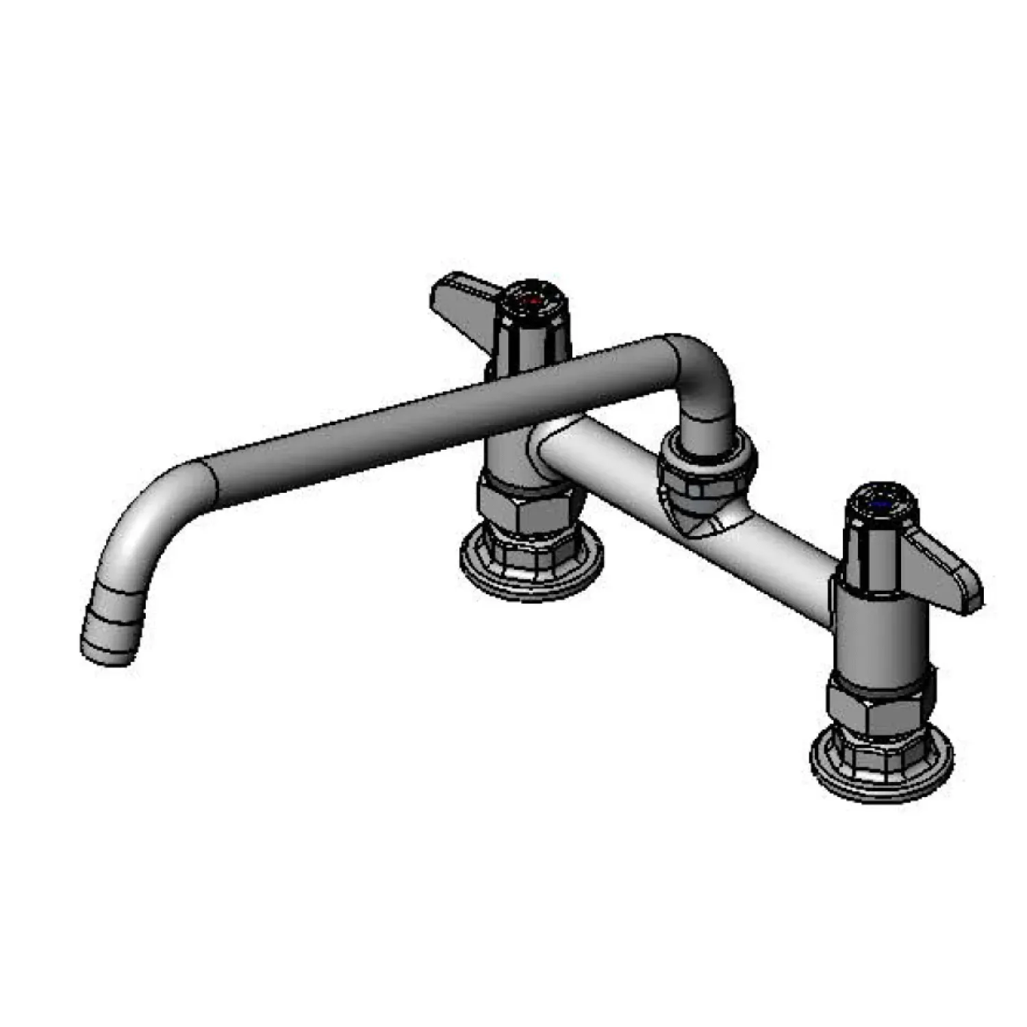 Facilitate Effective Maintenance with T&S Brass, 5F-7DLS12, Equip. This deck mount faucet is designed to meet the demands of a commercial restaurant setting. With its lever handles and 12" swing nozzle, it offers convenience and flexibility for various tasks in the kitchen. The supply nipple kit ensures easy installation and reliable performance.