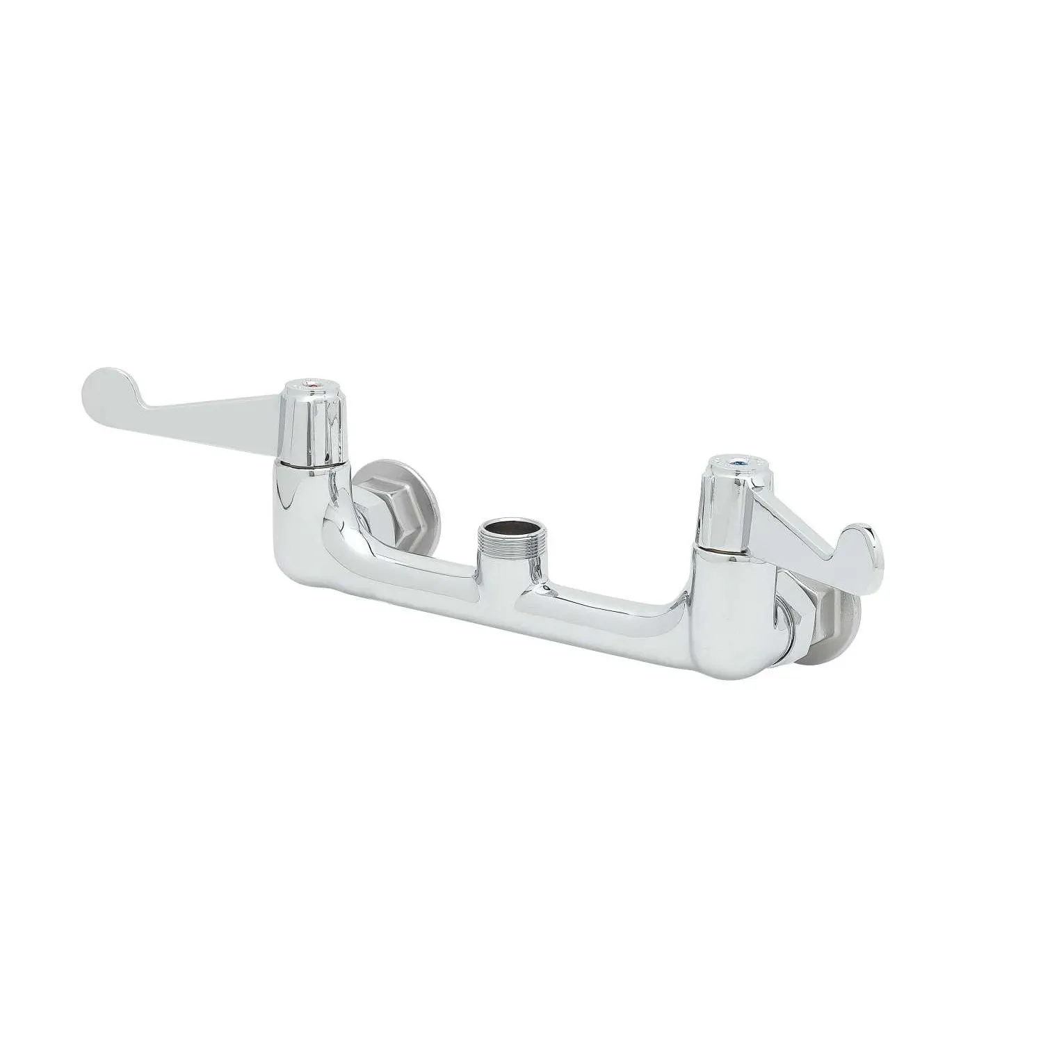 Enhance System Functionality with the T&S Brass, 5F-8WWX00, Faucet, Wall / Splash Mount. This high-quality faucet is designed specifically for commercial restaurant use, offering exceptional performance and durability. With its 8" wall mount and 4" wrist-action handles, this faucet provides easy and precise control over water flow, making it ideal for busy kitchen environments. The faucet is also equipped with a nozzle, allowing for efficient rinsing and cleaning of dishes and utensils. Its sturdy construction ensures long-lasting reliability, even in the most demanding restaurant settings. Upgrade your restaurant's functionality and efficiency with this top-of-the-line faucet.