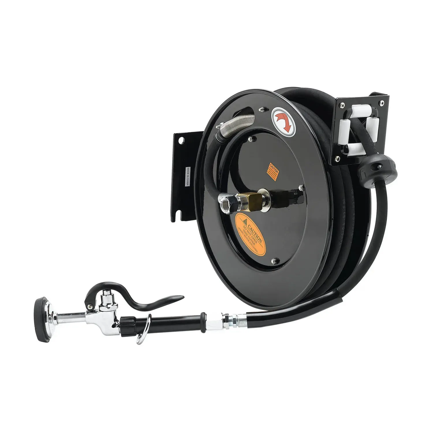 Optimize system operation with the T&S Brass, 5HR-242-01-A Hose Reel Assembly. Designed specifically for commercial restaurant use, this hose reel assembly is a must-have for any busy kitchen. With its open coated hose reel and black high flow spray valve, this assembly ensures efficient and effective cleaning of dishes, utensils, and surfaces. The 3/8" x 50' hose provides ample reach, allowing you to easily maneuver around the kitchen. Improve productivity and cleanliness in your restaurant with the T&S Brass, 5HR-242-01-A Hose Reel Assembly.