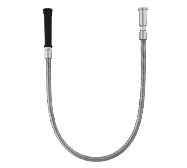 Maximize Equipment Performance with the T&S Brass, 5HSE96, Pre-Rinse Flex Hose. Designed specifically for commercial restaurant use, this flexible stainless steel hose is a game-changer in the kitchen. With a generous length of 96 inches, it provides ample reach for all your pre-rinse needs. The heat-resistant black handle ensures a comfortable grip, even when dealing with hot water. The polyurethane inner tubing guarantees durability and long-lasting performance, making it ideal for high-volume use in busy kitchens. The 3/4-14 UN female outlet ensures a secure connection to your pre-rinse unit, preventing leaks and ensuring efficient water flow. Invest in quality and efficiency with the T&S Brass, 5HSE96, Pre-Rinse Flex Hose.