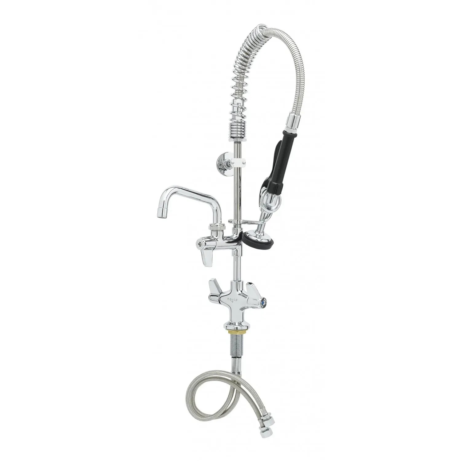 Optimize Equipment Use with the T&S Brass, 5MPH-2SLN-06, Pre-Rinse Faucet Assembly, Mini. This high-quality faucet assembly is designed to enhance efficiency and functionality in commercial restaurant settings. With its polished chrome plated brass body and 2 1/4" deck flange, this single hole deck mount mixing faucet adds a touch of elegance to any kitchen. The add-on faucet, also with a polished chrome plated brass body, provides additional convenience and versatility. The 6 1/8" swing nozzle with a laminar flow device ensures a steady and controlled water flow, perfect for rinsing dishes and utensils. The T&S Brass Pre-Rinse Faucet Assembly is packed with features that make it ideal for busy restaurant kitchens. Its durable construction ensures long-lasting performance, while its compact size makes it suitable for smaller spaces. Upgrade your restaurant's equipment with this reliable and efficient pre-rinse faucet assembly.