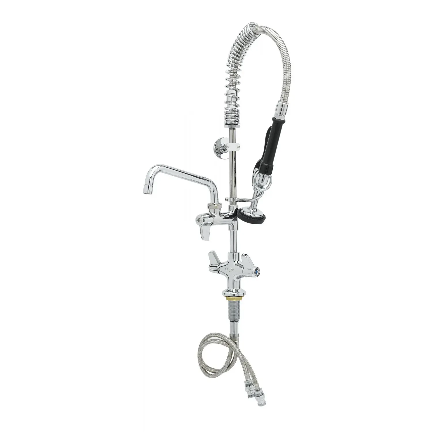 Secure Operational Integrity with the T&S Brass, 5MPH-2SLN-08, Pre-Rinse Faucet Assembly, Mini. This commercial-grade faucet is designed to meet the rigorous demands of a busy restaurant kitchen. With its polished chrome plated brass body and 2 1/4" deck flange, this single hole deck mount mixing faucet ensures durability and long-lasting performance. The add-on faucet with a polished chrome plated brass body provides additional functionality, allowing for easy multitasking. The 8 1/8" swing nozzle with a laminar flow device delivers a steady stream of water, perfect for rinsing dishes and utensils. Whether you're washing, rinsing, or filling, this pre-rinse faucet assembly is a reliable and efficient choice. Upgrade your kitchen with the T&S Brass, 5MPH-2SLN-08, and experience the difference in performance and reliability.