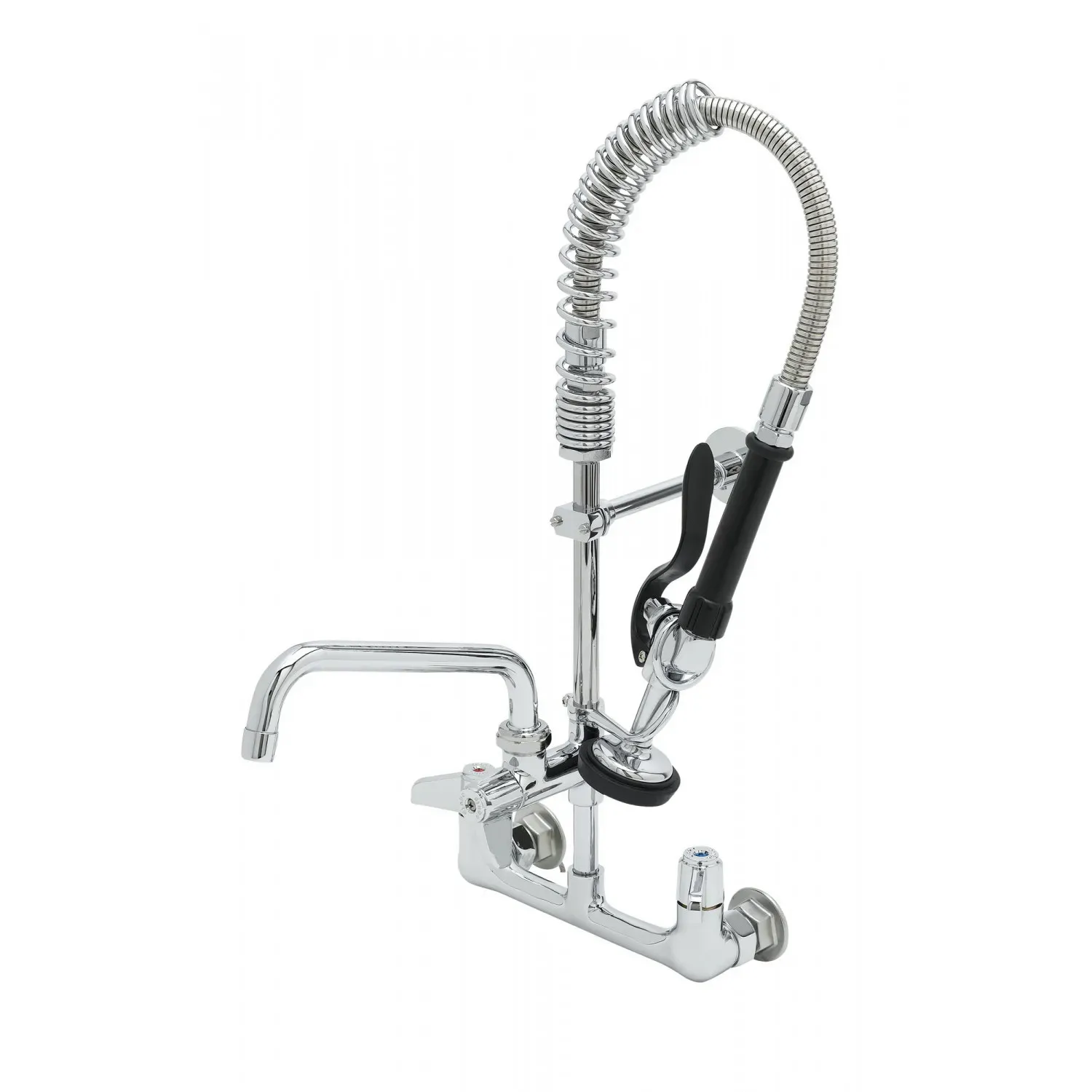Manage Equipment Accessories with T&S Brass, 5MPH-8WLN-08, Pre-Rinse Faucet Assembly, Mini. This versatile faucet assembly is a must-have for any commercial restaurant. With its polished chrome plated brass body and 2 1/4" deck flange, it not only adds a touch of elegance to your kitchen but also ensures durability and longevity. The 8" wall mount mixing faucet and add-on faucet provide convenience and flexibility in managing your equipment accessories. The 8 1/8" swing nozzle with a laminar flow device ensures a steady and controlled water flow, making it ideal for rinsing dishes, utensils, and food items. Designed by T&S Brass, a trusted name in the industry, this pre-rinse faucet assembly is built to withstand the demands of a busy commercial kitchen. Upgrade your restaurant's functionality and efficiency with this reliable and high-quality product.