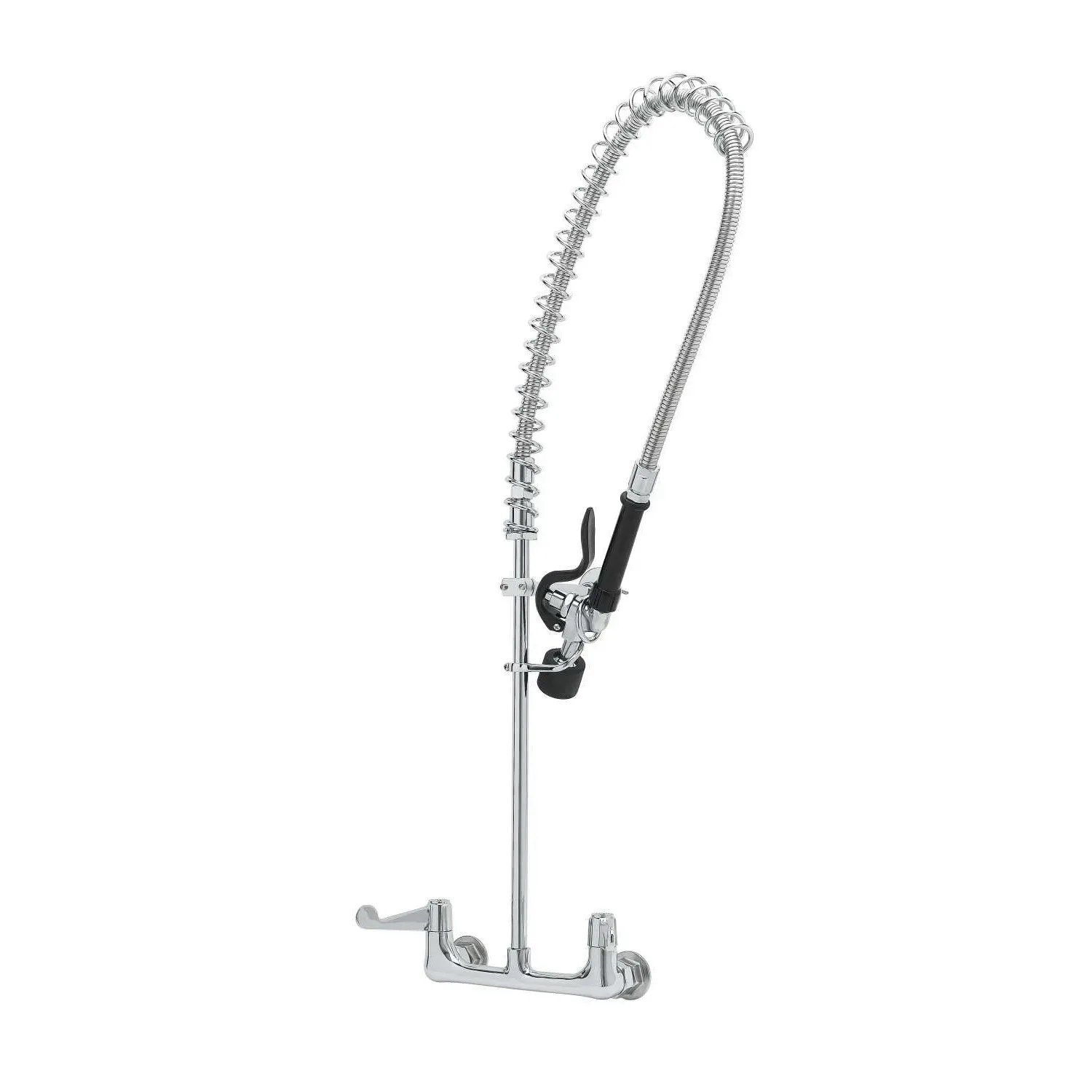 Optimize system operation with the T&S Brass, 5PR-8W00-C, Pre-Rinse Faucet Assembly. This commercial-grade faucet assembly is designed to enhance efficiency and productivity in any restaurant setting. With its 8" wall mount polished chrome plated brass body, it not only adds a touch of elegance to your kitchen but also ensures durability and longevity. The 18" rigid riser allows for easy maneuverability, while the 44" flexible stainless steel hose with a heat-resistant black handle and hold-down ring provides versatility and convenience during food preparation and cleaning tasks. Whether you need to rinse dishes, wash vegetables, or clean countertops, this pre-rinse faucet assembly is up to the task. Trust in T&S Brass, a reputable vendor known for their high-quality products. Upgrade your restaurant's kitchen with this reliable and efficient pre-rinse faucet assembly.