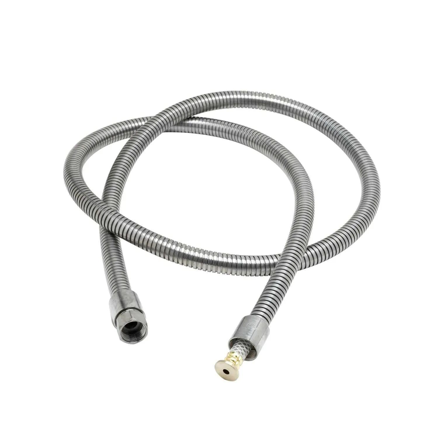 Manage Equipment Accessories with T&S Brass, B-0066-H2A, Pre-Rinse Flex Hose. This versatile hose assembly is a must-have for any commercial restaurant. With its 60 1/2" flexible stainless steel construction and polyurethane inner tubing, it offers durability and flexibility for all your pre-rinse needs. The 7/8-20 UN female outlet ensures a secure connection, while the absence of a handle allows for easy customization to fit your specific requirements. Whether you need to rinse dishes, clean countertops, or wash produce, this pre-rinse flex hose is up to the task. Upgrade your restaurant's equipment accessories with the T&S Brass B-0066-H2A Pre-Rinse Flex Hose and experience the convenience and efficiency it brings to your daily operations.