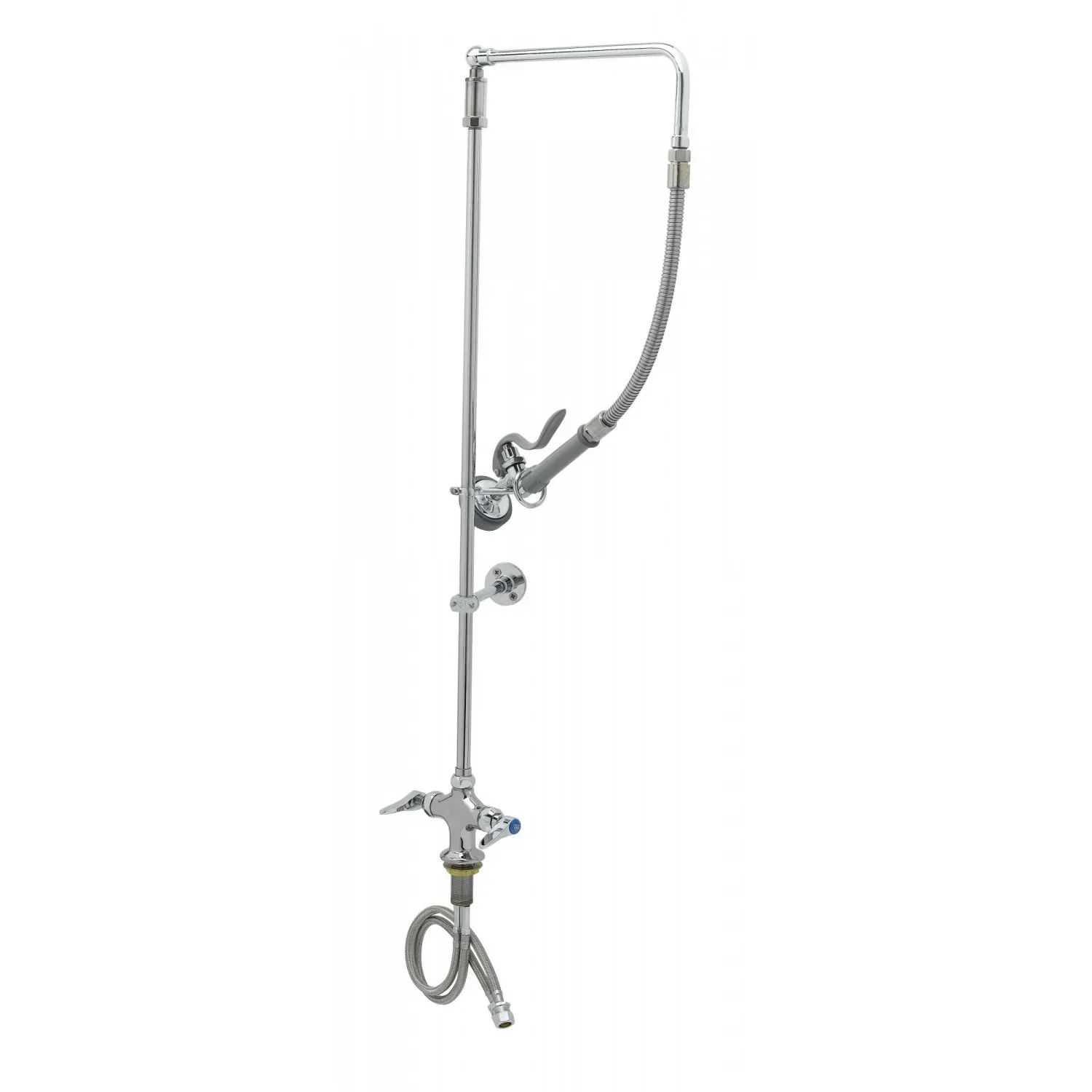 Ensure Equipment Consistency with the T&S Brass, B-0111-B, Pre-Rinse Faucet Assembly. This easy-to-install pre-rinse faucet is designed specifically for commercial restaurant use, providing a reliable and efficient solution for your kitchen needs. With its overhead swivel arm and single hole base, this faucet offers flexibility and convenience, allowing you to easily reach and clean every corner of your sink. The polished chrome plated brass body not only adds a sleek and professional look to your kitchen but also ensures durability and longevity. The EasyInstall riser makes installation quick and hassle-free, saving you time and effort. Equipped with inlet flex lines and a 12" swivel arm, this pre-rinse faucet assembly offers superior functionality and ease of use. Trust T&S Brass to deliver high-quality products that meet the demands of a busy commercial restaurant environment.