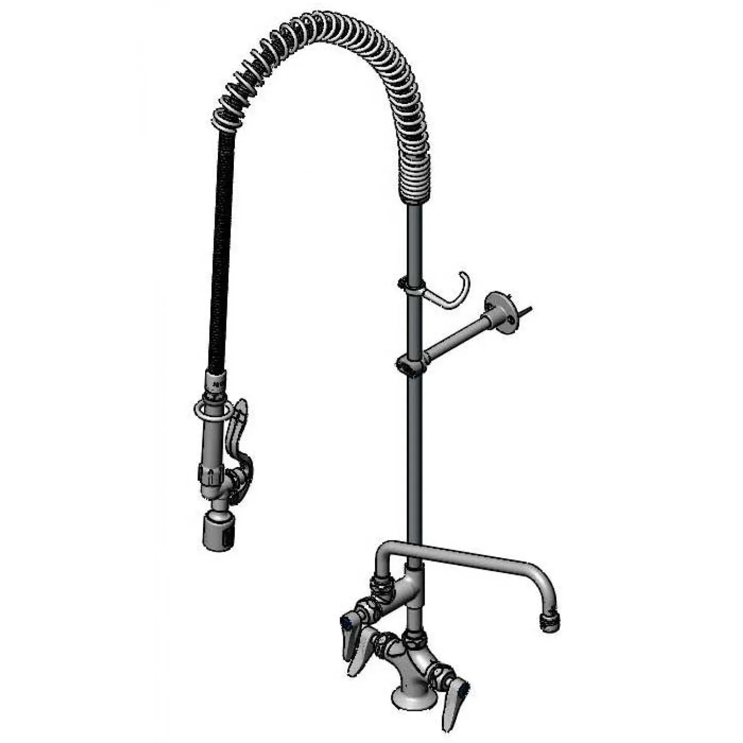 Ensure Equipment Consistency with the T&S Brass, B-0113-12-CRBJ, Pre-Rinse Faucet Assembly, with Add On Faucet. This single hole deck mount mixing faucet is designed to meet the demands of a busy commercial restaurant. With its polished chrome plated brass body, it not only adds a touch of elegance to your kitchen but also ensures durability and longevity. The 12" swing nozzle with a stream regulator outlet provides flexibility and convenience, allowing you to easily reach different areas of your sink. The easy-install add-on faucet further enhances functionality, making it easier to rinse dishes and utensils. This pre-rinse faucet assembly is a must-have for any restaurant looking to maintain equipment consistency and efficiency. Trust T&S Brass, a reputable vendor known for their high-quality products, to deliver a reliable and efficient solution for your restaurant's needs.