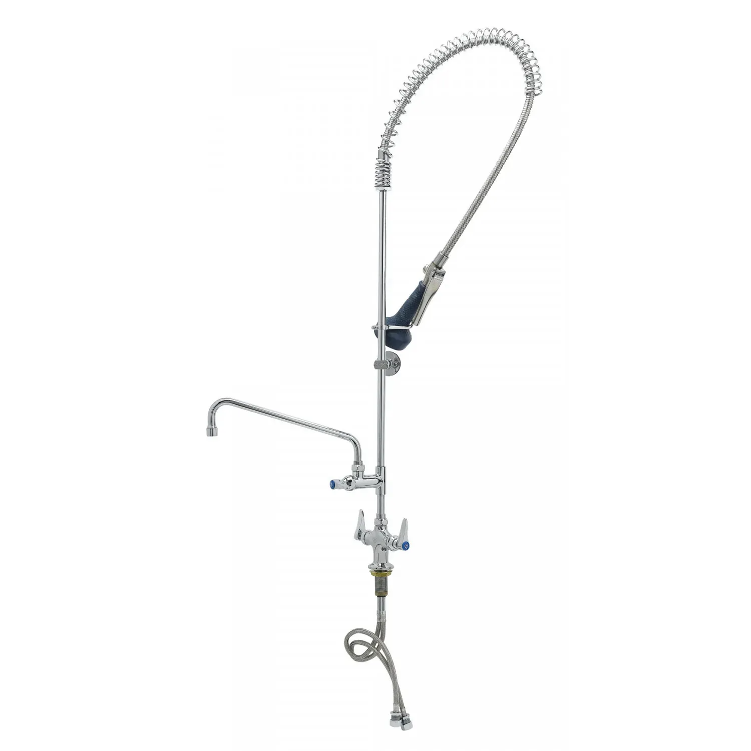 Facilitate Effective Maintenance with T&S Brass, B-0113-A12-B08C, Pre-Rinse Faucet Assembly, with Add On Faucet. This commercial-grade pre-rinse faucet assembly is designed to streamline your restaurant's dishwashing process. With its single hole base and easy-install add-on faucet, this unit offers convenience and efficiency. The 12" swing nozzle with a stream regulator outlet allows for precise control and powerful rinsing, ensuring thorough cleaning of dishes and utensils. The polished chrome plated brass body not only adds a sleek and professional look to your kitchen but also provides durability and resistance to corrosion. The included 18" flex lines and wall bracket offer flexibility in installation, making it suitable for any commercial kitchen setup. Trust T&S Brass, a reputable vendor known for their quality products, to deliver a pre-rinse faucet assembly that meets the demands of a busy restaurant environment. Upgrade your kitchen with this reliable and efficient solution.