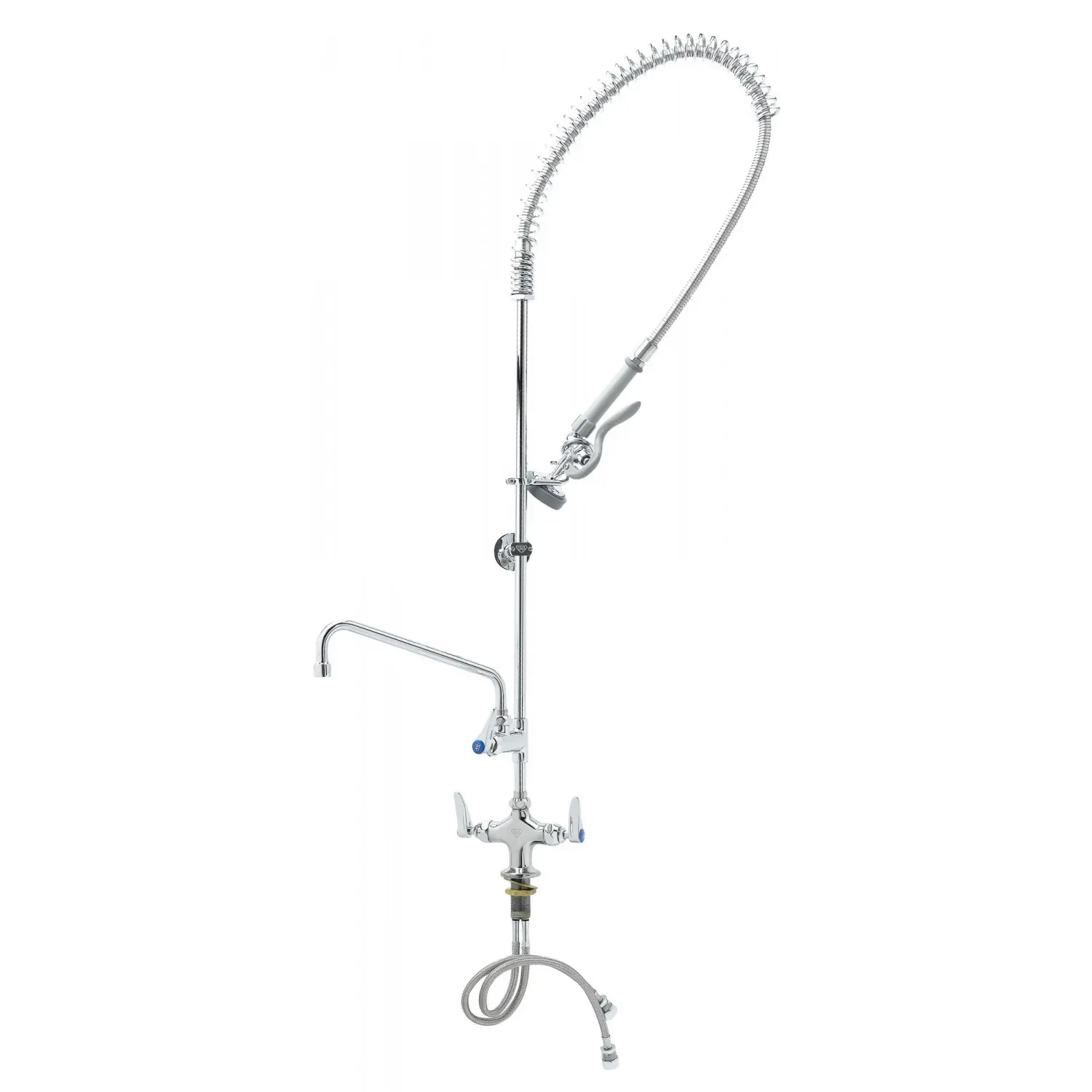 Improve Overall Functionality with the T&S Brass, B-0113-ADF10-B Pre-Rinse Faucet Assembly with Add On Faucet. This easy-to-install pre-rinse faucet is designed specifically for commercial restaurant use, offering enhanced convenience and efficiency. The single hole base and 10" add-on faucet provide flexibility and versatility, allowing for easy maneuverability and precise control of water flow. The 18" flex lines ensure durability and reliability, while the included wall bracket adds stability and support. With its polished chrome plated brass body, this pre-rinse faucet assembly not only looks sleek and professional but also withstands the rigors of a busy kitchen environment. The 10" swing nozzle with a stream regulator outlet allows for efficient rinsing and cleaning, making it an essential tool for any commercial kitchen. Upgrade your restaurant's functionality with the T&S Brass, B-0113-ADF10-B Pre-Rinse Faucet Assembly with Add On Faucet.