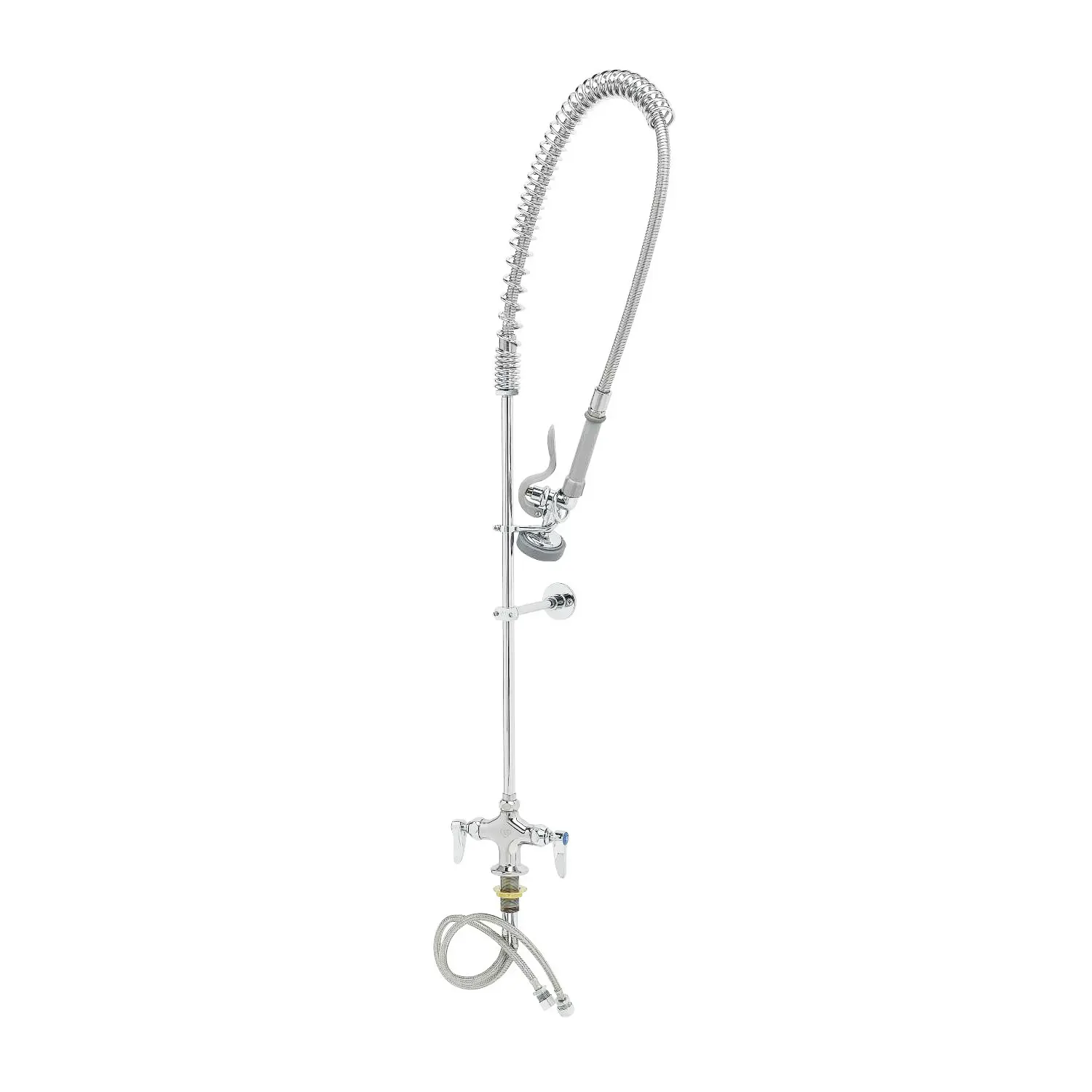 Maintain System Integrity with the T&S Brass, B-0113-B Pre-Rinse Faucet Assembly. Designed for commercial restaurant use, this easy-install pre-rinse faucet ensures efficient and reliable performance. The single hole base and flexible lines make installation a breeze, saving you time and effort. With a polished chrome plated brass body, this faucet not only adds a sleek and professional look to your kitchen but also ensures durability and longevity. The easy-install riser allows for quick installation, while the 44" flexible stainless steel hose with a heat-resistant gray handle and hold down ring provides flexibility and ease of use. Whether you're rinsing dishes, cleaning produce, or filling large pots, this pre-rinse faucet assembly is a must-have for any busy commercial kitchen. Trust T&S Brass, a reputable vendor known for their quality and reliability. Upgrade your restaurant's efficiency and functionality with the T&S Brass, B-0113-B Pre-Rinse Faucet Assembly.