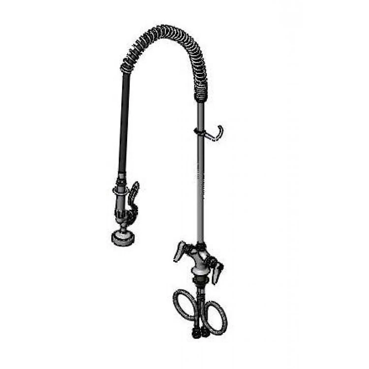 Ensure Consistent Performance with the T&S Brass, B-0113-R, Pre-Rinse Faucet Assembly. Designed for commercial restaurant use, this easy-install pre-rinse faucet assembly guarantees reliable performance and efficiency. With its single hole base and 18" flex lines, this faucet offers easy installation and flexibility in any kitchen setup. The polished chrome plated brass body ensures durability and a sleek appearance that complements any restaurant decor. The 44" rubber hose with a heat-resistant gray handle and hold down ring provides superior maneuverability and control during pre-rinse tasks. The PVC hose is resistant to wear and tear, ensuring long-lasting use in a busy restaurant environment. Upgrade your restaurant's kitchen with the T&S Brass, B-0113-R, Pre-Rinse Faucet Assembly for efficient and reliable performance.