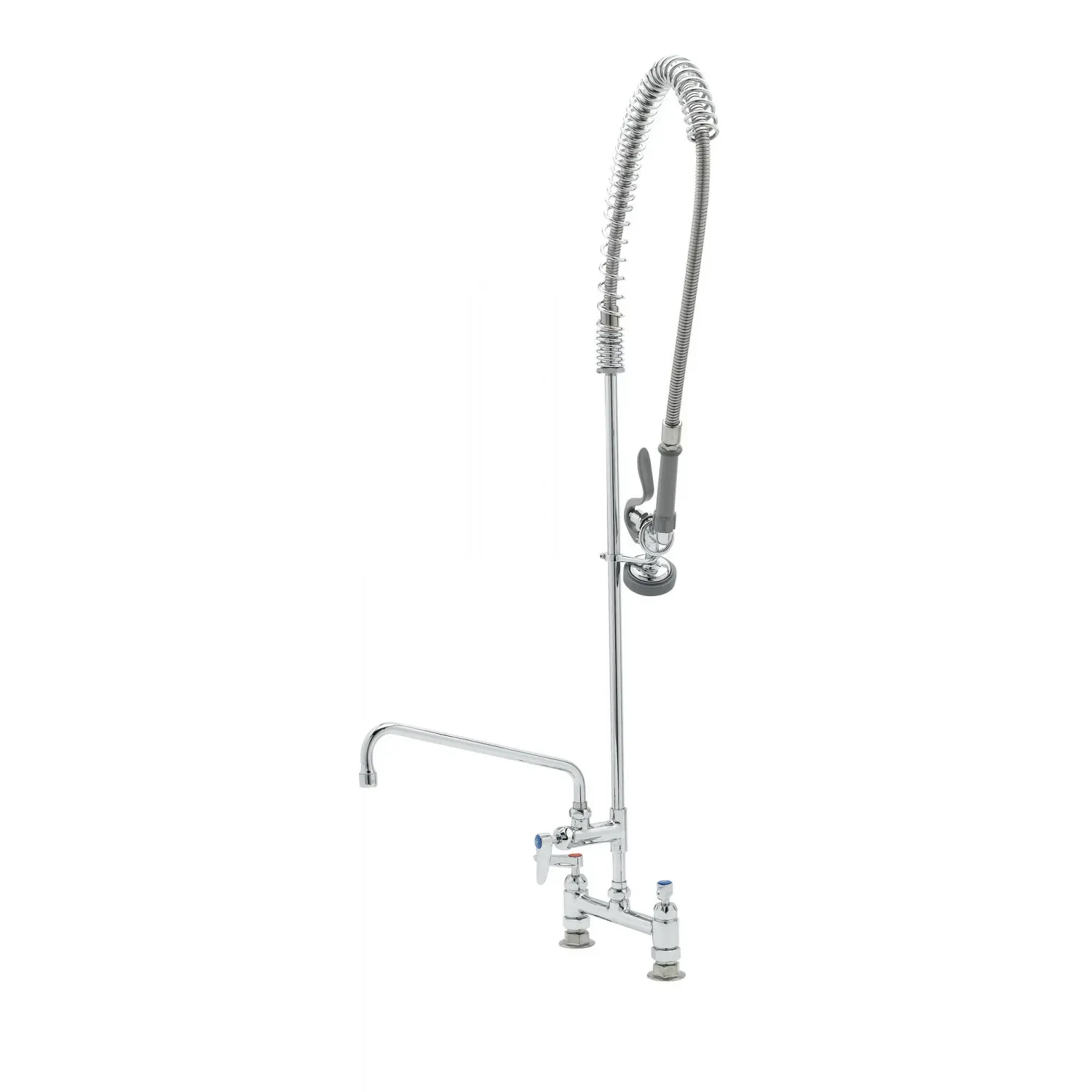 Ensure system integrity with the T&S Brass B-0123-12-CR-B Pre-Rinse Faucet Assembly. Designed specifically for commercial restaurant use, this pre-rinse unit is equipped with Ceramas and a wall bracket for added convenience and durability. The 8" deck mount mixing faucet features a polished chrome plated brass body, ensuring long-lasting performance in a busy kitchen environment. The easy-install add-on faucet also boasts a polished chrome plated brass body, providing a seamless integration with your existing setup. With a 12" swing nozzle and stream regulator outlet, this pre-rinse unit offers precise control and efficient cleaning. The T&S Brass B-0123-12-CR-B is part of the Series 1 collection, known for its reliability and quality. Whether you're rinsing dishes, cleaning produce, or sanitizing surfaces, this pre-rinse faucet assembly is a must-have for any commercial restaurant. Trust T&S Brass for all your restaurant plumbing needs.
