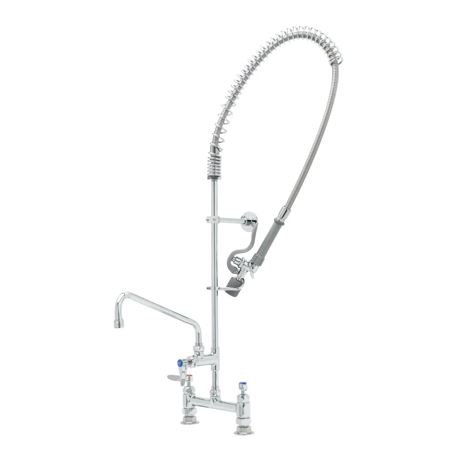 Improve System Performance with T&S Brass, B-0123-12-CR-BC Pre-Rinse Units. Designed for commercial restaurant use, this pre-rinse unit is a game-changer in the kitchen. With an 8" deck mount mixing faucet featuring a polished chrome plated brass body, this unit ensures durability and longevity. The add-on faucet with a ceramic cartridge and lever handle provides convenience and ease of use. The 12" swing nozzle with a stream regulator outlet allows for precise control and efficient rinsing. The 44" flexible stainless steel hose with a heat-resistant handle ensures flexibility and safety during operation. With a low flow spray valve and ceramic cartridges with check valves, this unit is both water-efficient and reliable. The 6" adjustable wall bracket and spray valve holder offer convenience and organization. Certified to ASME A112.18.1/CSA B125.1, NSF 61-Section 9, and NSF 372, this pre-rinse unit meets the highest industry standards. Upgrade your restaurant's performance with T&S Brass, B-0123-12-CR-BC Pre-Rinse Units.