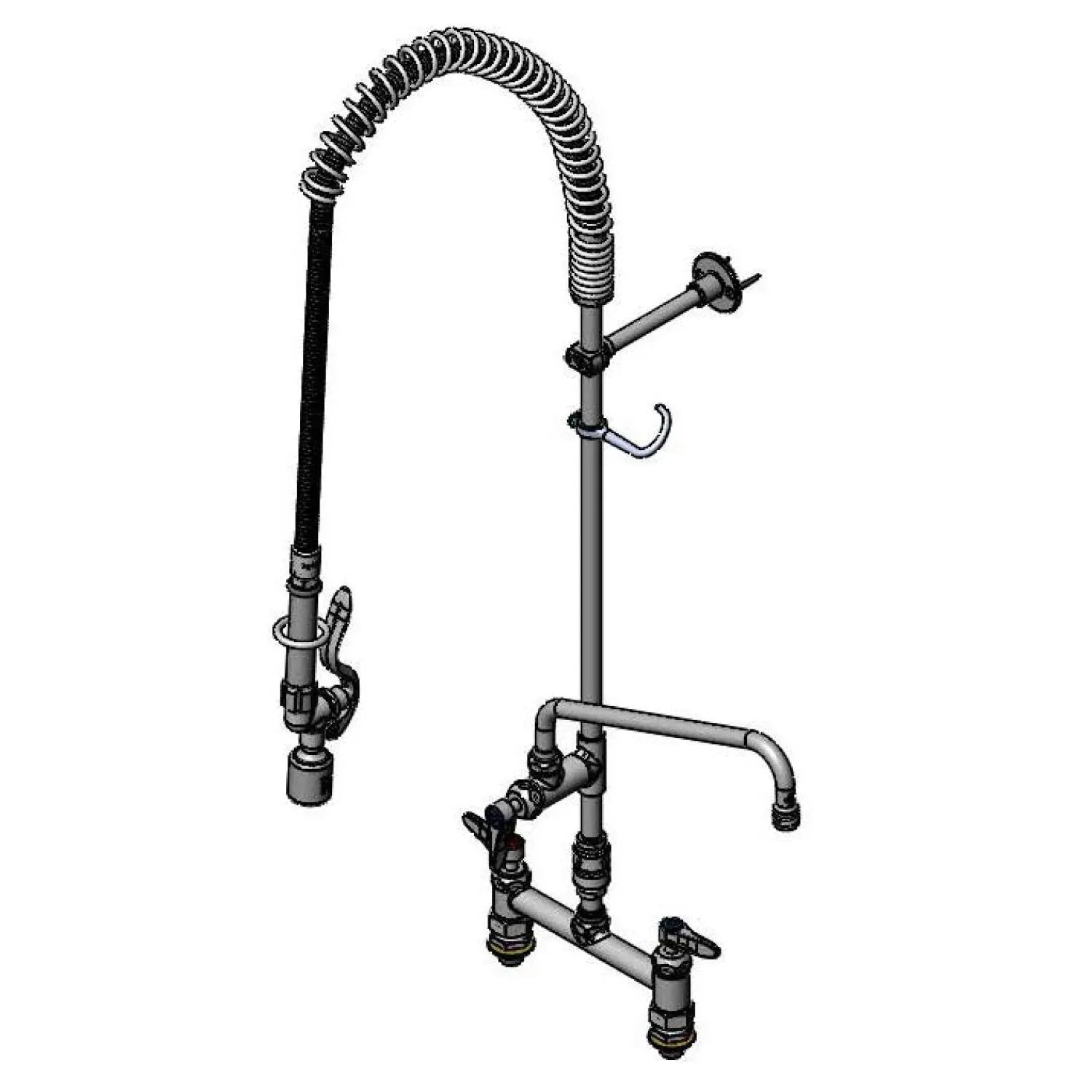Ensure System Integrity with the T&S Brass B-0123-12CRCVBC Pre-Rinse Units. Designed specifically for commercial restaurant use, this pre-rinse unit guarantees top-notch performance and durability. With its 8" deck mount mixing faucet featuring a polished chrome plated brass body, this unit adds a touch of elegance to any kitchen. The add-on faucet comes with a ceramic cartridge and lever handle for easy operation. The 12" swing nozzle with a stream regulator outlet ensures precise water flow control. The 44" flexible stainless steel hose with a heat-resistant handle allows for effortless maneuverability. The 0.65 GPM low flow spray valve conserves water without compromising on cleaning power. Certified to meet ASME, NSF, and CSA standards, this pre-rinse unit ensures compliance with industry regulations. Complete with a vacuum breaker, adjustable wall bracket, and spray valve holder, the T&S Brass B-0123-12CRCVBC Pre-Rinse Units are the perfect choice for maintaining cleanliness and efficiency in your commercial kitchen.