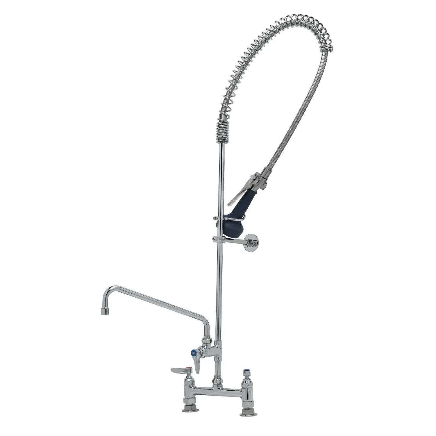 Upgrade Equipment Reliability with the T&S Brass, B-0123-A12-B08C Pre-Rinse Faucet Assembly with Add-On Faucet. This easy-to-install, 8" deck mount faucet is designed specifically for commercial restaurant use. With its polished chrome plated brass body, it not only adds a touch of elegance to your kitchen but also ensures durability and longevity. The 12" swing nozzle with a stream regulator outlet provides flexibility and convenience, allowing you to easily rinse dishes and utensils. The included wall bracket adds stability and support, making this faucet assembly a reliable choice for busy restaurant kitchens. With its Series 1 designation, you can trust that this pre-rinse faucet assembly meets the highest industry standards. Upgrade your restaurant's equipment with the T&S Brass, B-0123-A12-B08C Pre-Rinse Faucet Assembly with Add-On Faucet and experience improved efficiency and performance in your kitchen.