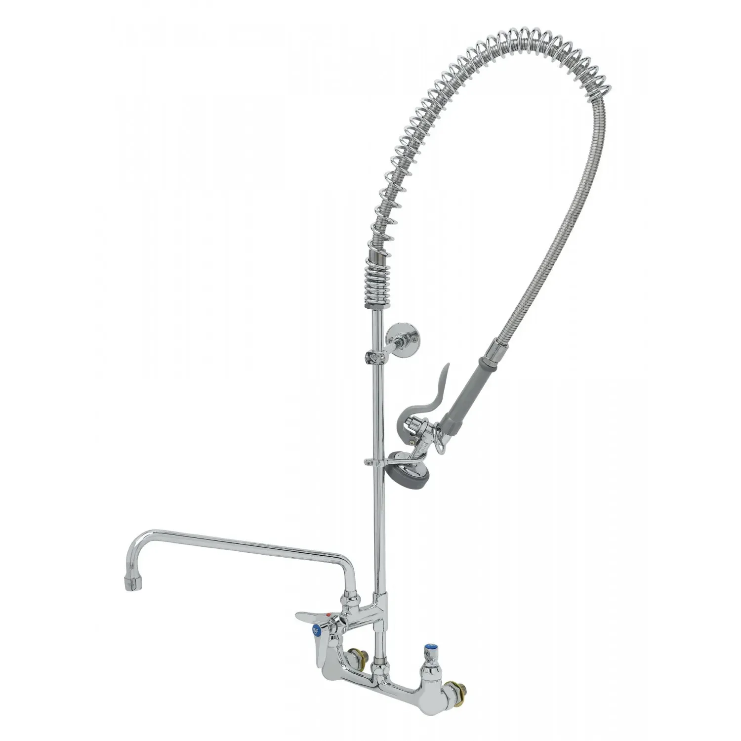 Maximize System Integrity with the T&S Brass, B-0133-01-44H Pre-Rinse Faucet Assembly. This commercial-grade pre-rinse faucet is designed to enhance efficiency and durability in any restaurant kitchen. With its 8" wall mount mixing faucet and polished chrome plated brass body, this assembly ensures long-lasting performance and easy installation. The 14" swing nozzle with a stream regulator outlet allows for precise control and efficient rinsing, while the B-0107 spray adds versatility to your cleaning routine. The "CC" inlets provide a secure connection, minimizing leaks and maximizing system integrity. Whether you're washing dishes, prepping ingredients, or cleaning surfaces, this pre-rinse faucet assembly is a reliable and essential tool for any commercial kitchen. Trust T&S Brass, a reputable vendor known for their quality and innovation in the industry. Upgrade your restaurant's efficiency and cleanliness with the T&S Brass, B-0133-01-44H Pre-Rinse Faucet Assembly.